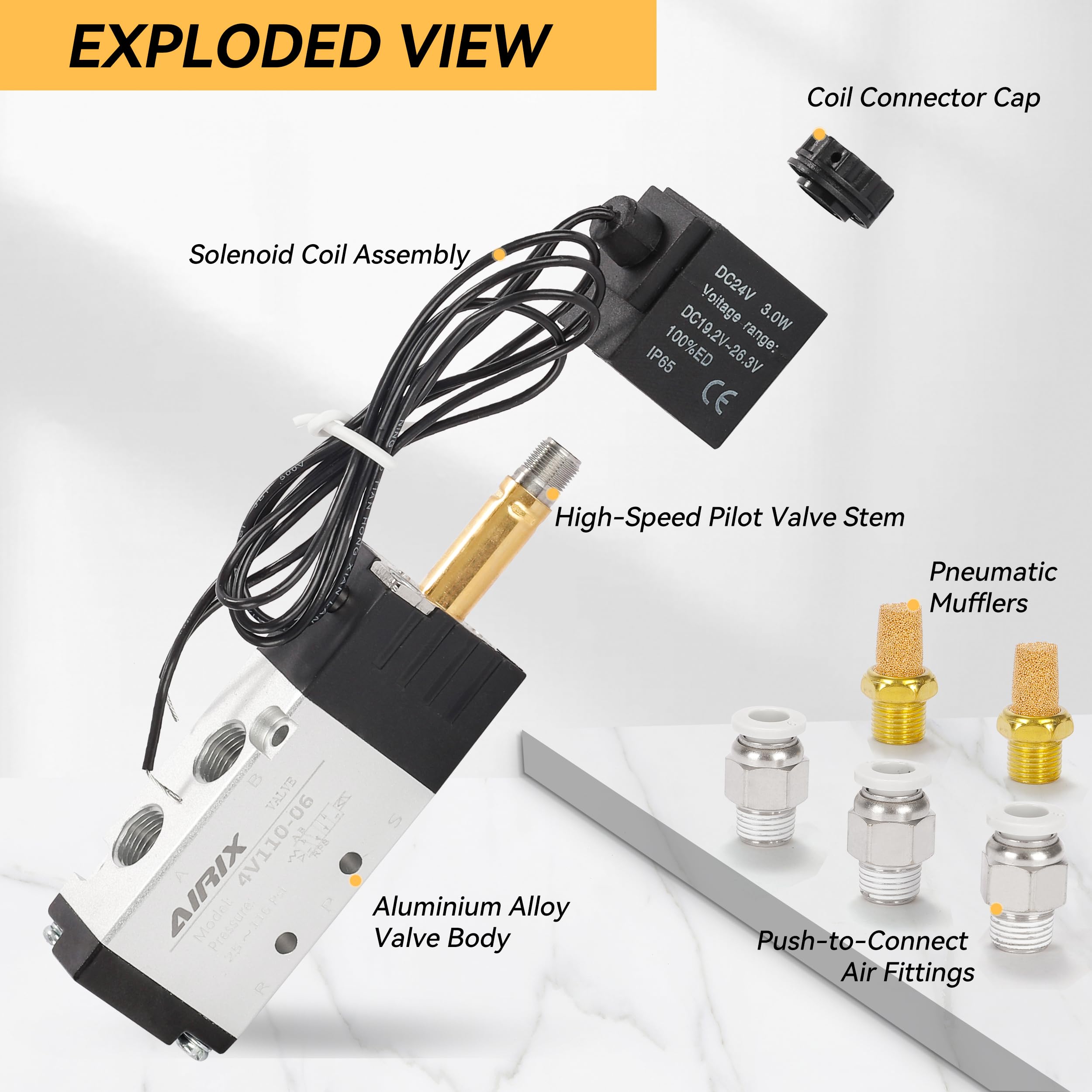 🔹 【Precision Air Control – 4V110-06 Valve】 Designed for pneumatic and automation systems, the AIRIX 4V110-06 solenoid valve offers reliable 2-position 5-way flow control. Ideal for regulating directional airflow in industrial applications with high repeatability.