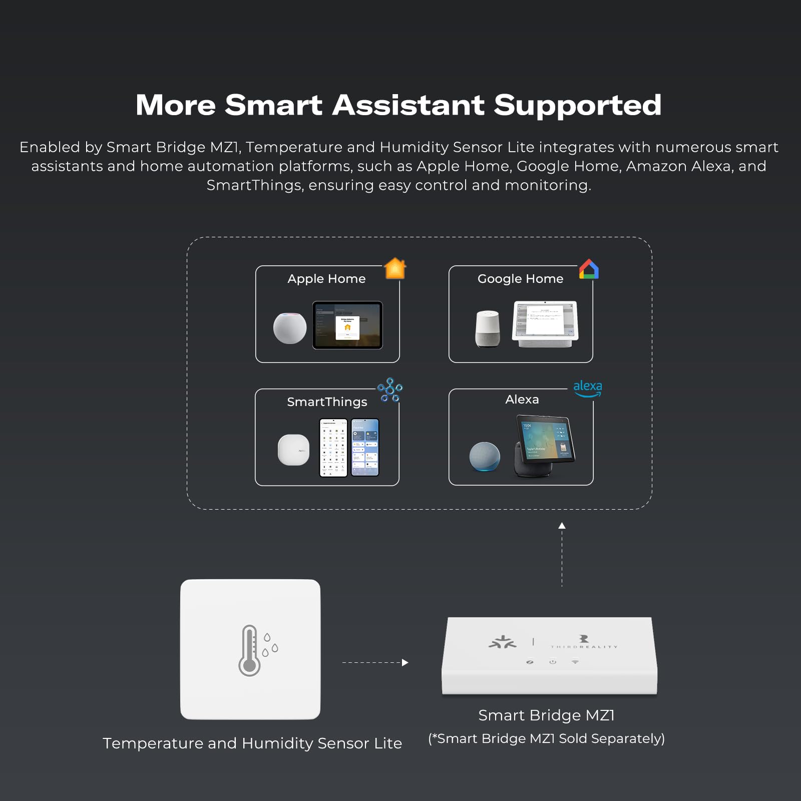 Support Access Matter:through THIRDREALITY Smart Bridge MZ1 can be compatible with more platforms, such as Amazon Alexa, Google Assistant, Apple HomeKit and more,for seamless smart home integration.