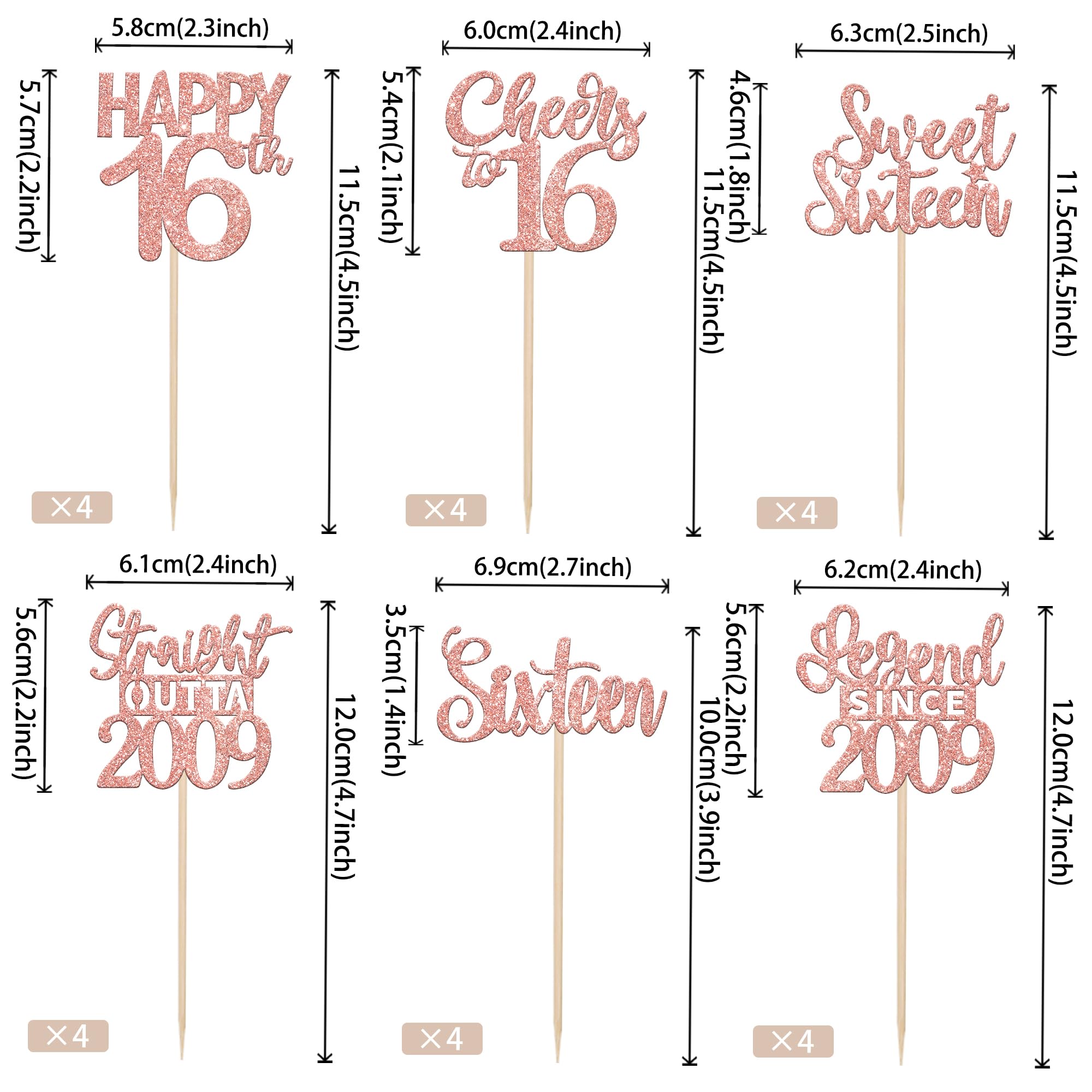 24PCS 16th Birthday Cupcake Toppers Sweet Sixteen Happy 16th Straight Outta 2009 Cupcake Picks Cheers to 16 Lengend Since 2009 Cake Decorations for 16th Birthday Anniversary Party Cake Decorations Supplies Perfect for legend since 2009 theme party, 16th anniversary theme party,cheers to 16 years theme party, 16 awesome theme party cupcake decorations supplies. Pack of 24 pcs,4 pcs of each design. The size is 2.3*4.5/ 2.4*4.5/ 2.5*4.5/ 2.4*4.7/ 2.7*3.9/ 2.4*4.7 inch ( with stick ) Made of high quality paper card stock,thick and sturdy. These straight outta 2009 cupcake toppers are one side glitter, another side is white, and they are intended for decoration only, please do not put them in oven or microwave. If the item you received has any defects, please contact us immediately. We will deal with it within 24 hours.