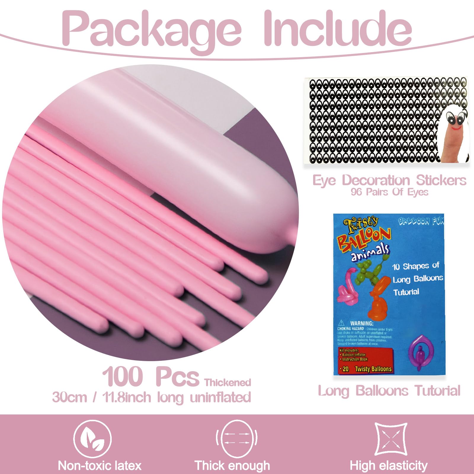 What you get: Pack of 100 Pastel Pink long balloons, 30cm long uninflated, up to 150cm after inflation, each balloon has undergone rigorous testing to reduce the defect rate as much as possible