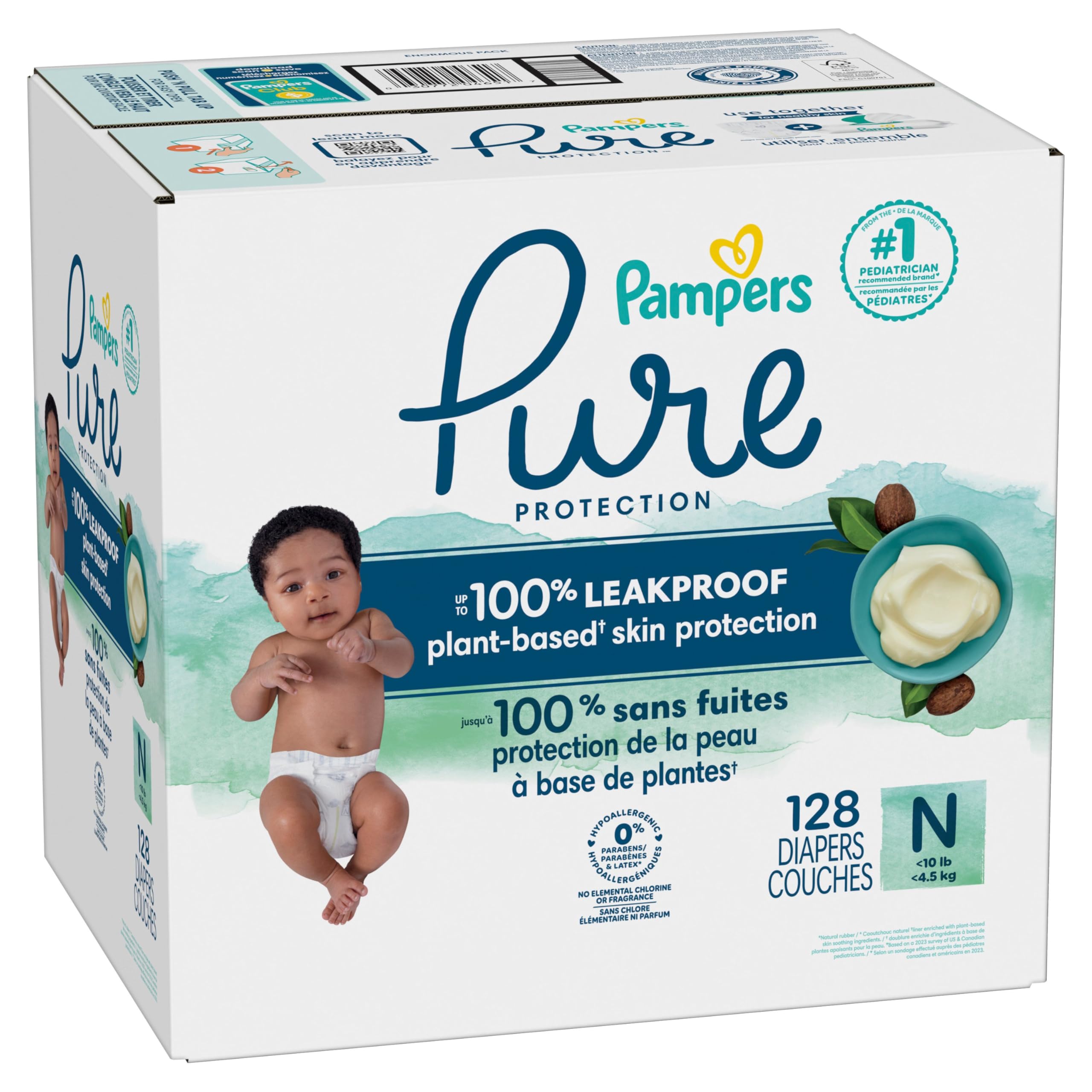 Your search is over. Everything youβve been waiting for in a diaper, youβll find with Pampers Pure. Our most premium protection for your newborn. MADE FOR SKIN HEALTH We've carefully crafted Pampers Pure diapers with plant-based ingredients and a shea butter infused liner that moisturizes to help nourish baby's skin. Pampers Pure Protection diapers are irresistibly soft and breathable. Now with NEW & IMPROVED softness! 2x softer than Honest diapers to help keep your baby comfy. Our luxury diapers are approved by the Skin Health Alliance. Use with Pampers Pure Aqua wipes to help protect baby's skin. LEAKAGE PROTECTION Up to 100% leakproof plant-based skin protection*. Pampers Pure Protection features an absorbent Lockaway Core that stays 2X drier** for healthy skin and a Blowout Barrier that helps prevent blowouts. PROTECTION YOU CAN TRUST The ingredients we've chosen to leave out are just as important. That's why Pampers Pure Protection diapers are free of elemental chlorine, fragrance, parabens, and latex***and are hypoallergenic. All Pampers diapers are assembled in the U.S.A. Discover trusted skin protection from the #1 pediatrician recommended brand. PREMIUM DESIGN Our designer, boutique style prints make Pampers Pure just as precious as they are protecting for your baby girl or boy. *Liner enriched with plant-based, skin-soothing ingredients **vs Honest ***No natural rubber