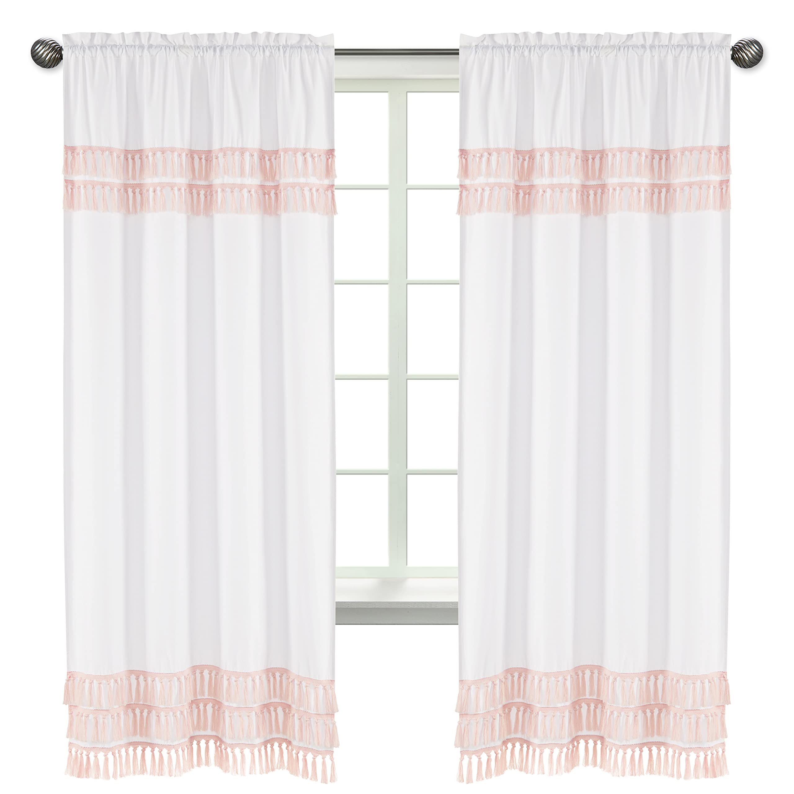 100% Cotton - Solid White Finished with a Blush Pink Knotted Tassel Macrame Fringe