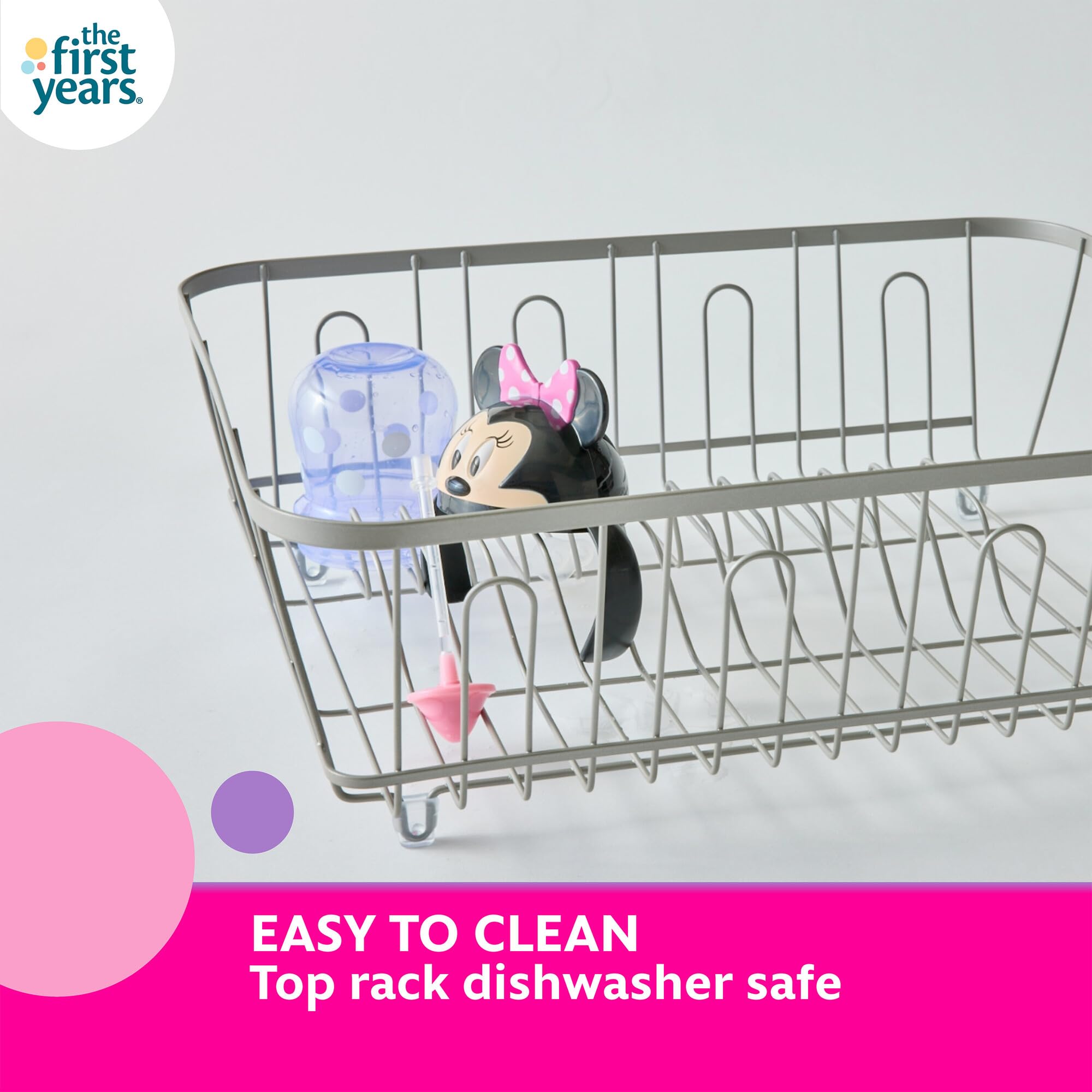 Easy to Clean: This Minnie Mouse training cup is ready to be used again and again with a design that is top-rack dishwasher safe for simple and quick cleaning