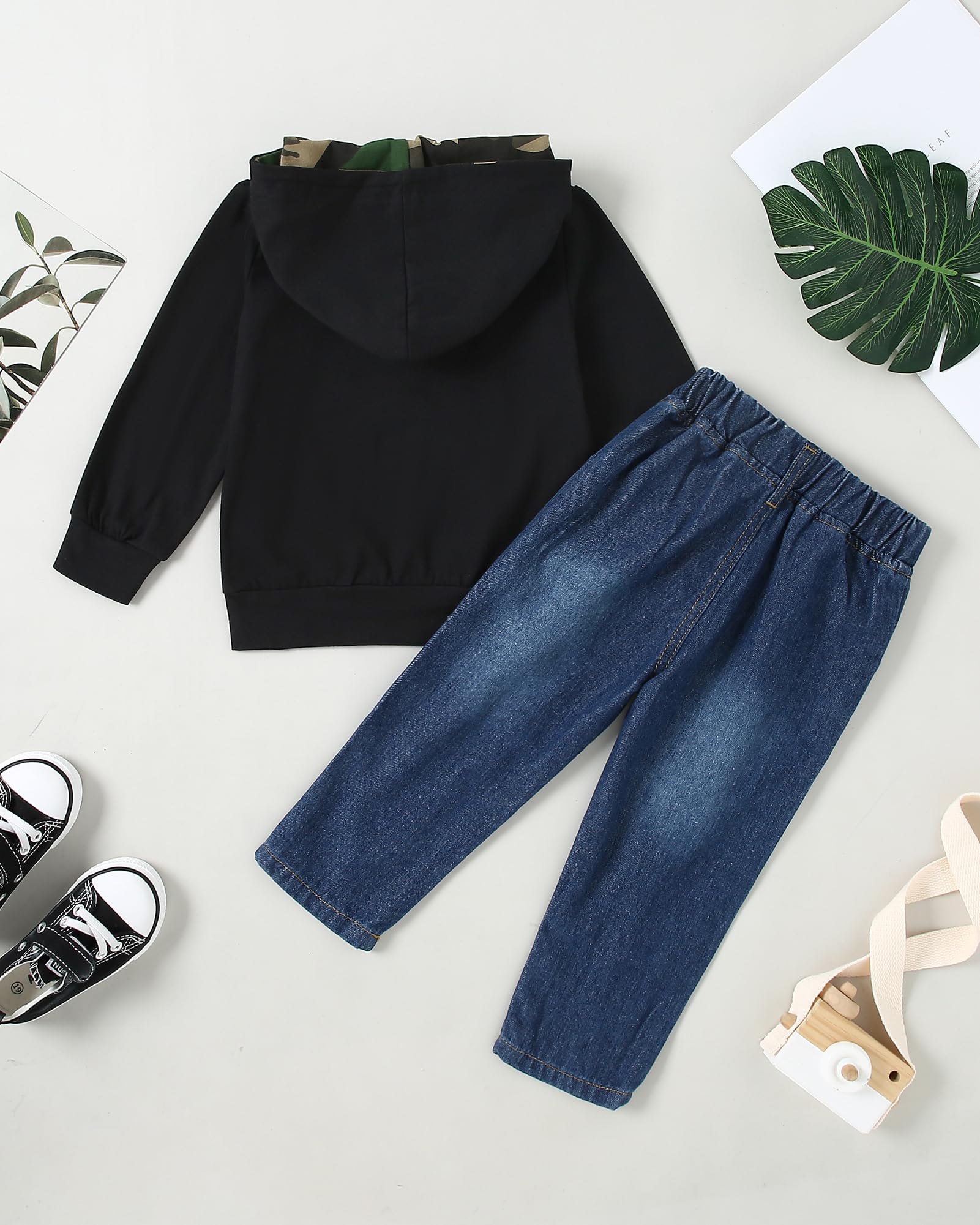 Description Fall Toddler Boy Clothes (1-6Y): Comfy hoodie & cool jeans set.Machine washable.