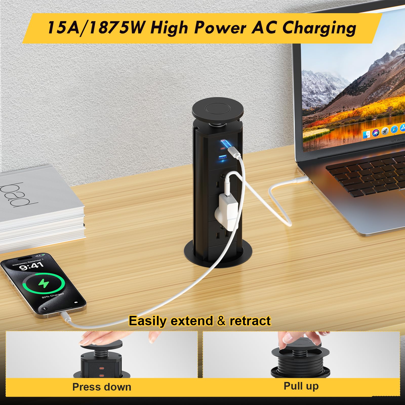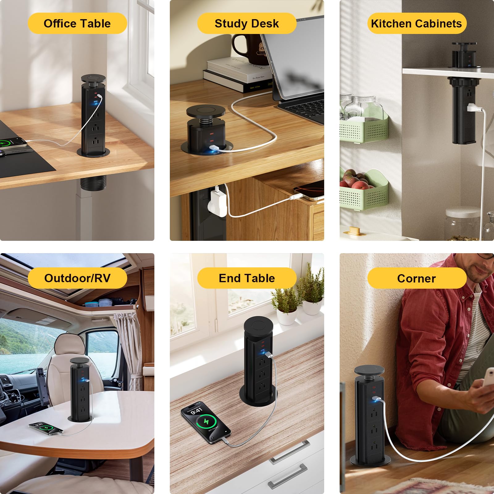 【 Retractable Power Strip】: This retractable outlet and USB hub is the perfect for countertop electronic device solution. Hidden design, makes things look clean and neat, keep your space clear.
