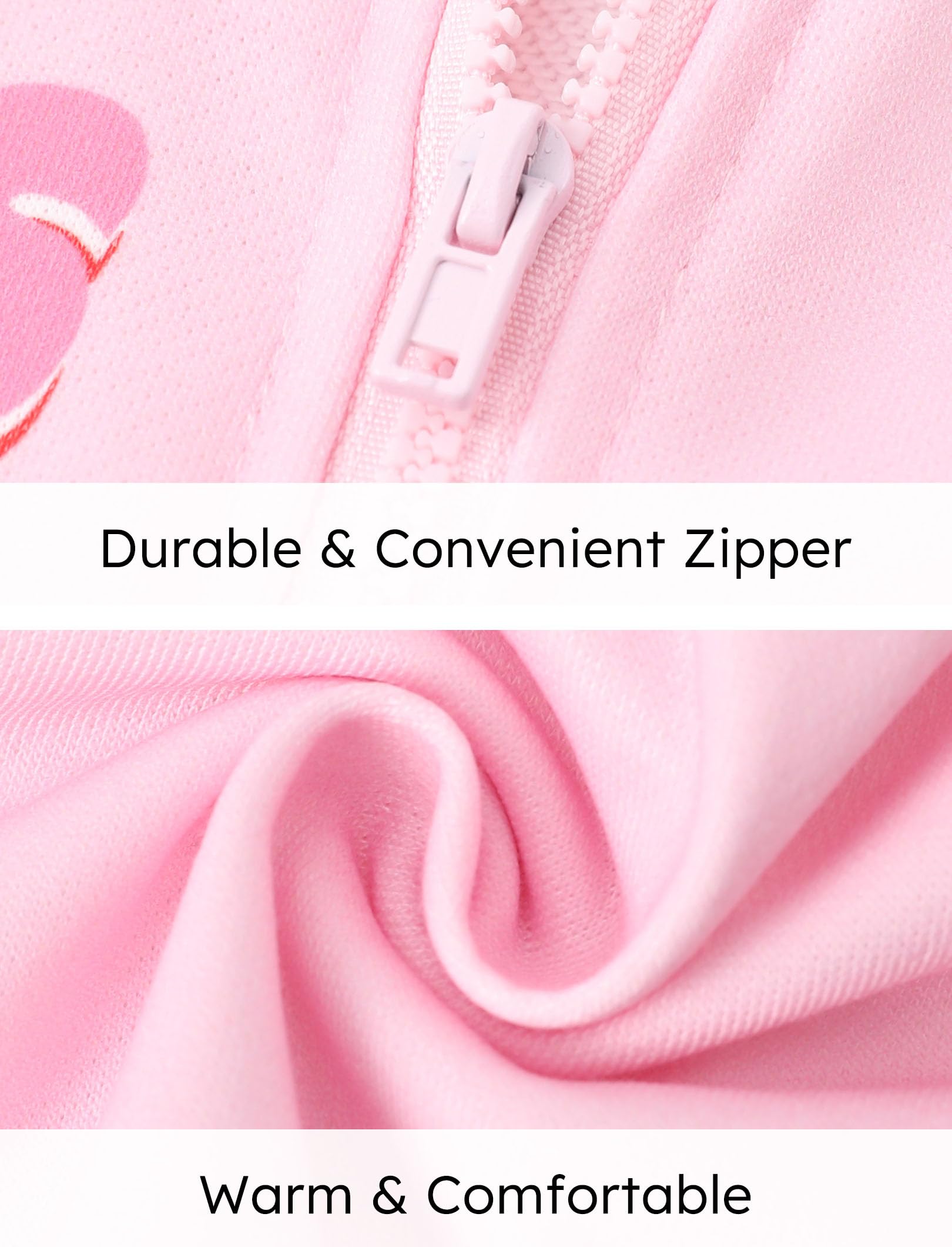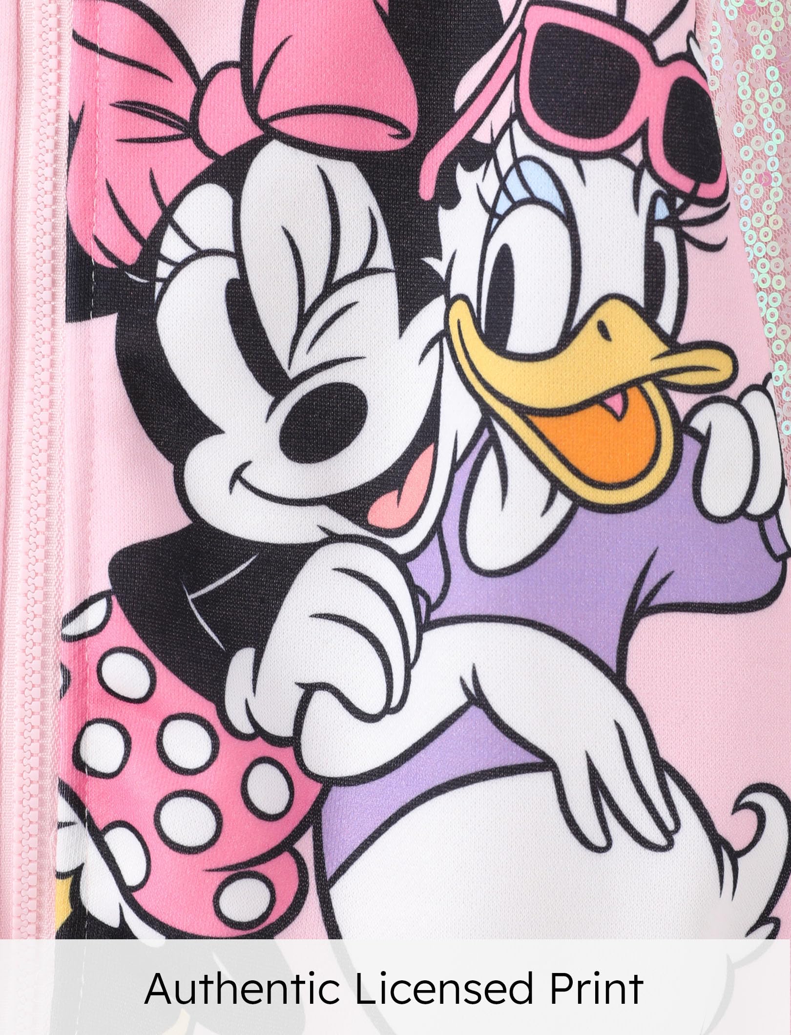 Charming & Unique Designs: This Minnie Mouse jacket features a bold, oversized print of Minnie Mouse and Daisy Duck, capturing their playful personalities in a fun way. The sleeves and hood have sparkling sequin accents, adding shine to cooler days. The full-zip design ensures easy wear, while the cozy hood provides extra warmth. Perfect for layering in fall and winter, this toddler girl sweatshirt is a must-have for Disney fans