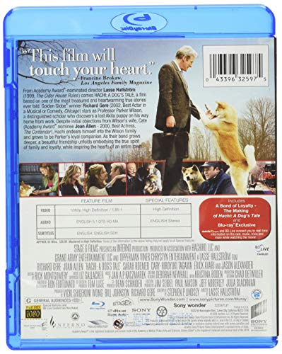 Amazon.com Based on a true story from Japan, Hachi: A Dog's Tale is a moving film about loyalty and the rare, invincible bonds that occasionally form almost instantaneously in the most unlikely places. College professor Parker Wilson (Richard Gere) finds a young Akita puppy that's been abandoned at the local train station, and he's instantly captivated by the dog. Assuming the dog's owner will return to the train station to claim him in the morning, Parker takes the puppy home overnight. But when no one comes to get the dog, Parker convinces his wife, Cate (Joan Allen), to welcome him as part of the family. He dubs the puppy Hachiko--Hachi, for short--because of the Japanese symbol for good luck that's hanging from his collar. Hachi is a somewhat peculiar dog that refuses to learn to fetch or master other people-pleasing tricks, but he is a faithful companion and friend to Parker, alerting him of potential dangers and accompanying him to the train station each morning and meeting him there after his return trip each evening. An unforeseen event will continually test Hachi's devotion. This film is neither overwrought nor sappy; it is heartfelt and immensely powerful despite its tendency to drag in a few places. Prepare to be moved to tears by this beautiful, seemingly simple film--it's about so much more than just the relationship between a man and his dog. --Tami Horiuchi Product Description From Academy Award®-nominated director Lasse Hallström (2000, The Cider House Rules) comes HACHI: A DOG’S TALE, a film based on one of the most treasured and heartwarming true stories ever told. Golden Globe winner Richard Gere (2002, Best Actor in a Musical or Comedy, Chicago) and Academy Award® nominee Joan Allen (2000, Best Actress, The Contender) star in this inspiring true story.