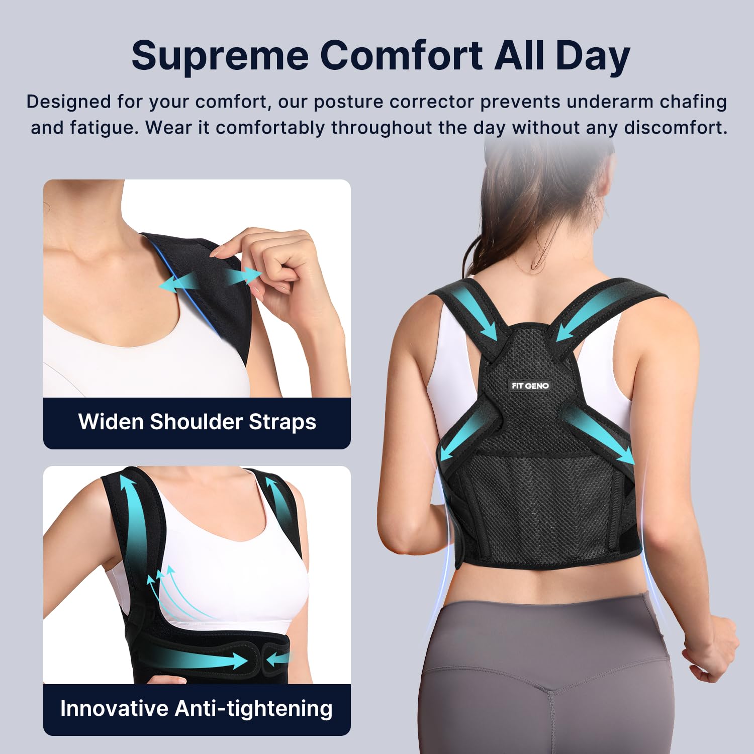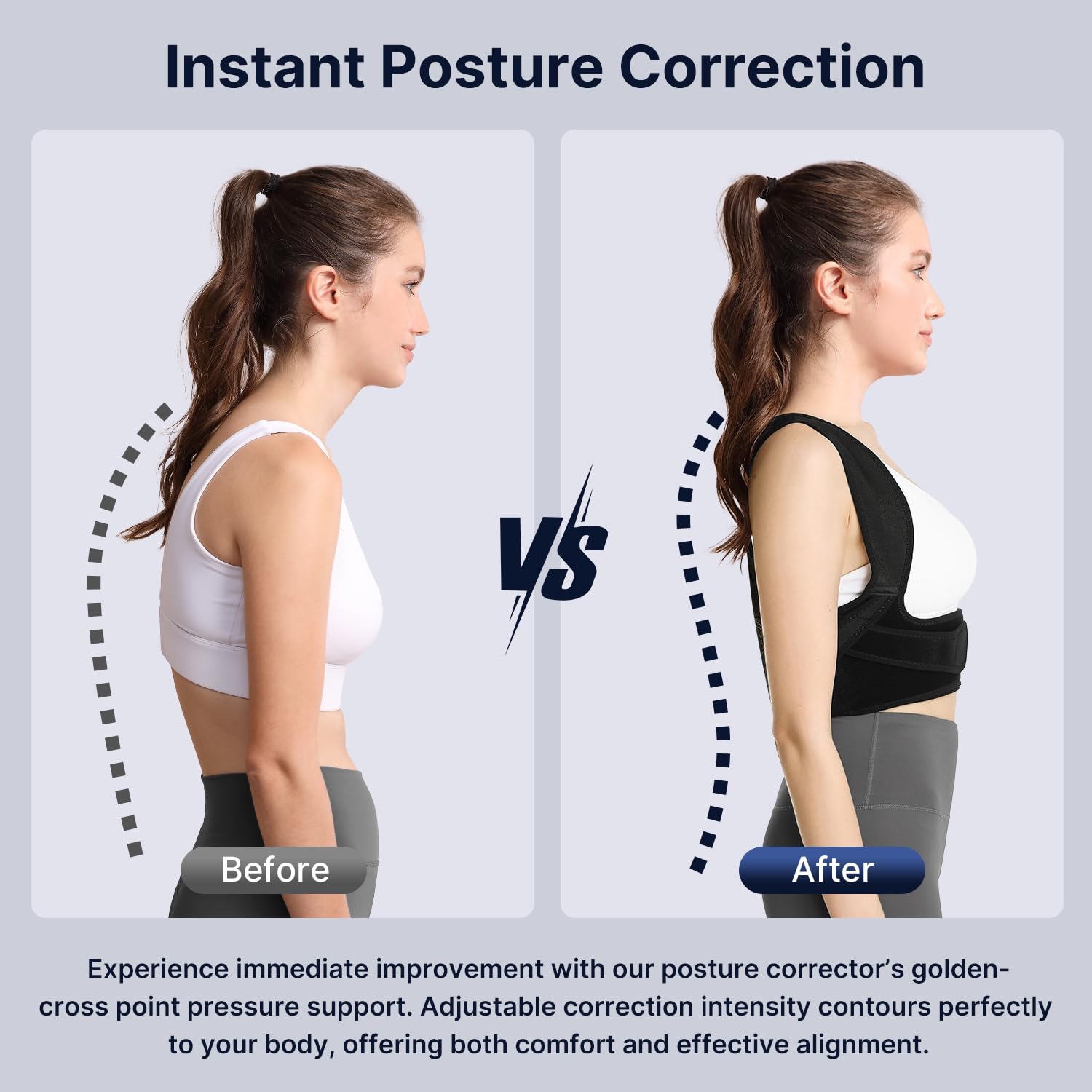 Innovative and Adjustable Design: Featuring an adjustable belt and breathable materials, our posture corrector comfortably supports the upper body, helping to correct posture and alleviate discomfort.