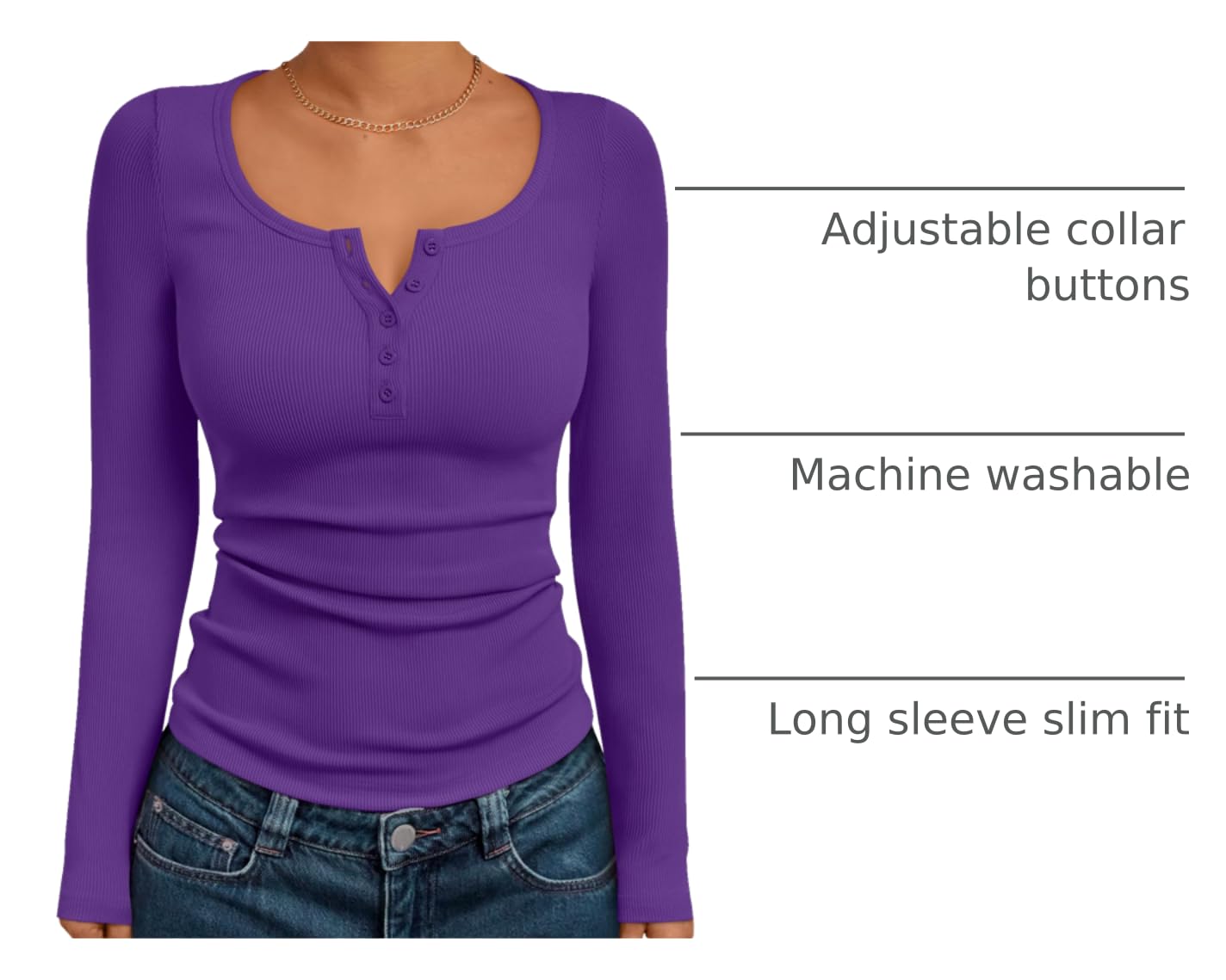 Design: Featuring a classic Henry collar with a scoop neck and a long sleeve slim fit, it is fashion and accentuates the figure; The collar buckle provides more possibilities for the product, allowing for the creation of sexy V neck or scoop neck making long sleeve shirts suitable for more occasions