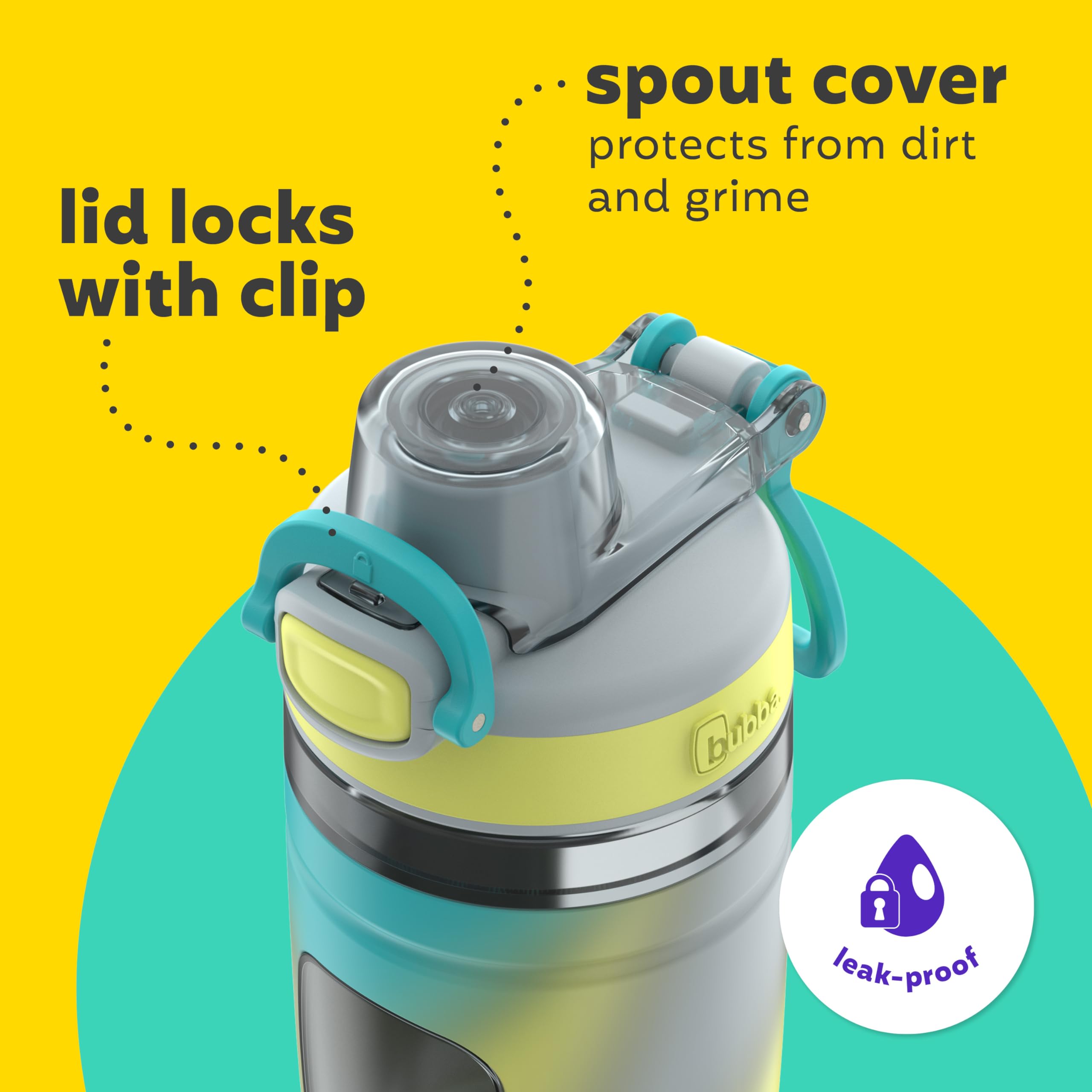 100% leak proof lid when closed with a spout cover that locks to protect from dirt and grime.
