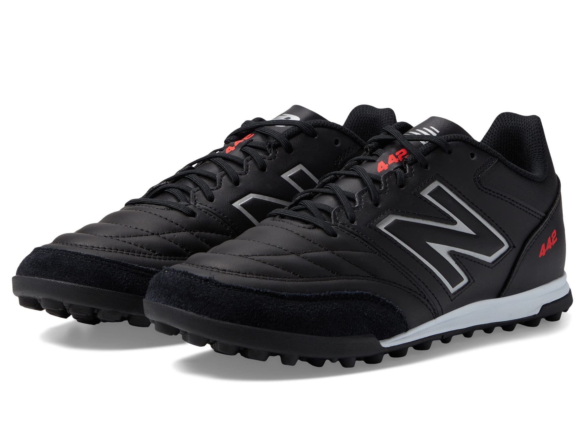 Description Featuring a re-designed full-grain leather upper and a rubber lugged outsole, the New Balance 442 V2 Team TF provides the perfect balance between form and function. Premium materials and construction come together to create a soccer cleat that commands respect on the field. A soft internal lining offers a comfortable fit, while the outsole provides traction on turf and the street. The 442 V2 marries a classic look with modern performance to help you stand out on the pitch.