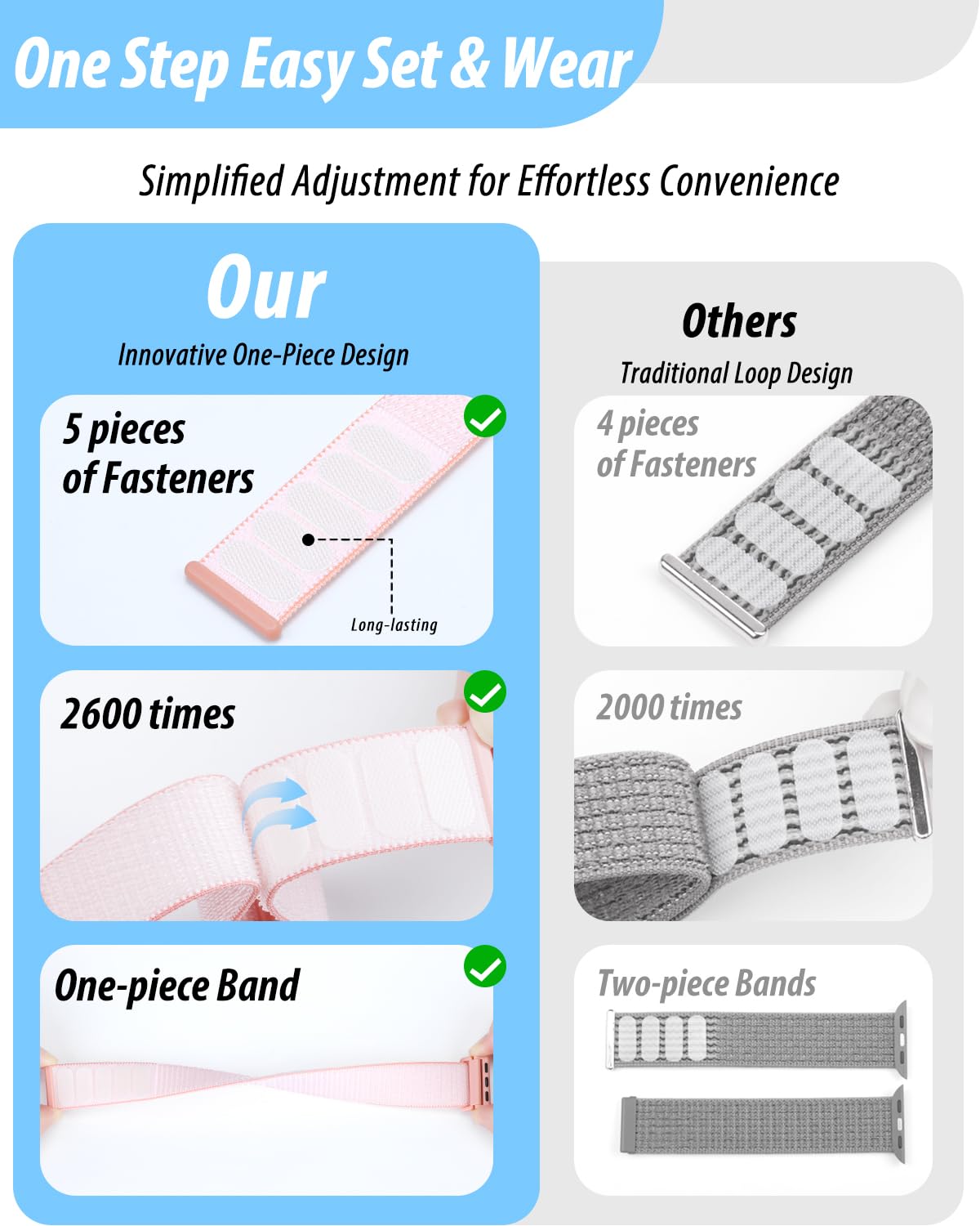 [Easy to Wear]: Our iWatch bands for women men feature a magic tape closure for easy, one-handed length adjustments, ensuring a snug fit during workouts and outdoor adventures. Durable, breathable, and comfortable, they keep your smartwatch securely in place no matter how active you get