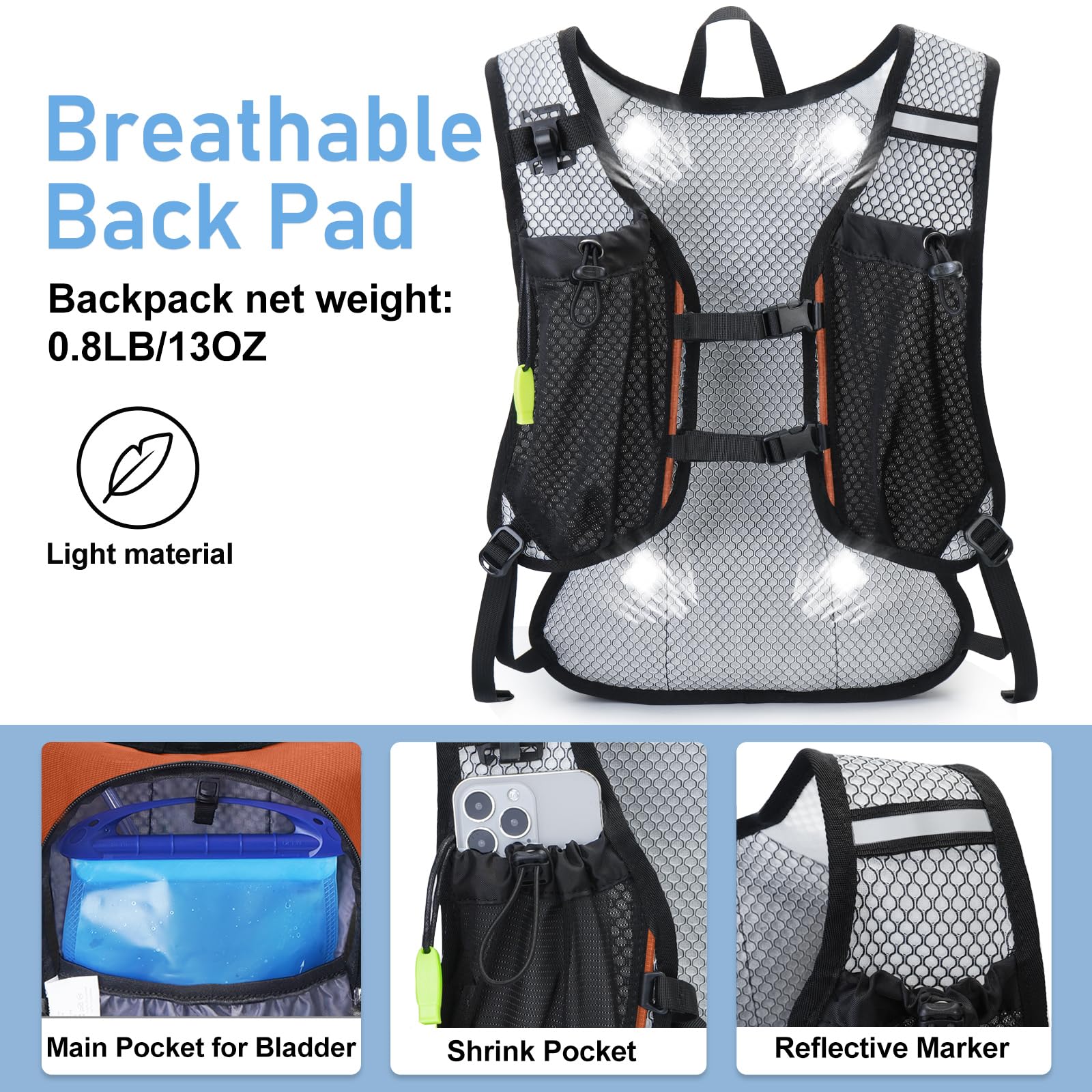 Lightweight 12 L Hydration Backpack: Super lightweight 8.5 oz hydration pack backpack with 2 L water bladder. Waterproof and tear-resistant fabric, PU coated nylon hydration pack bears 25 lbs