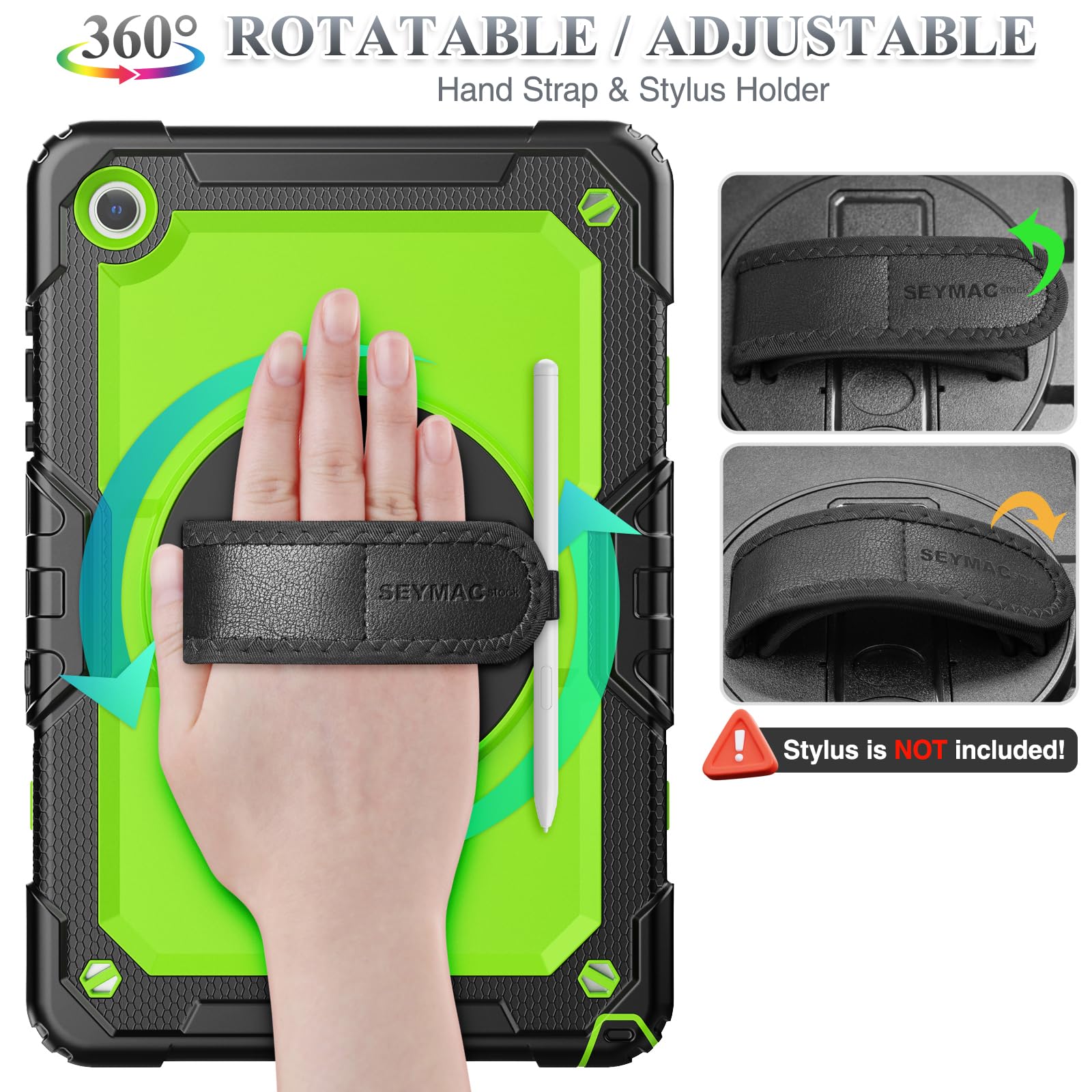 SEYMAC stock Case for Samsung Galaxy Tab A11+ Plus/A9+ Plus 11'', Full-Body Drop Protection Case with Screen Protector Pencil Holder [360° Rotating Hand Strap] &Stand, Green+Black