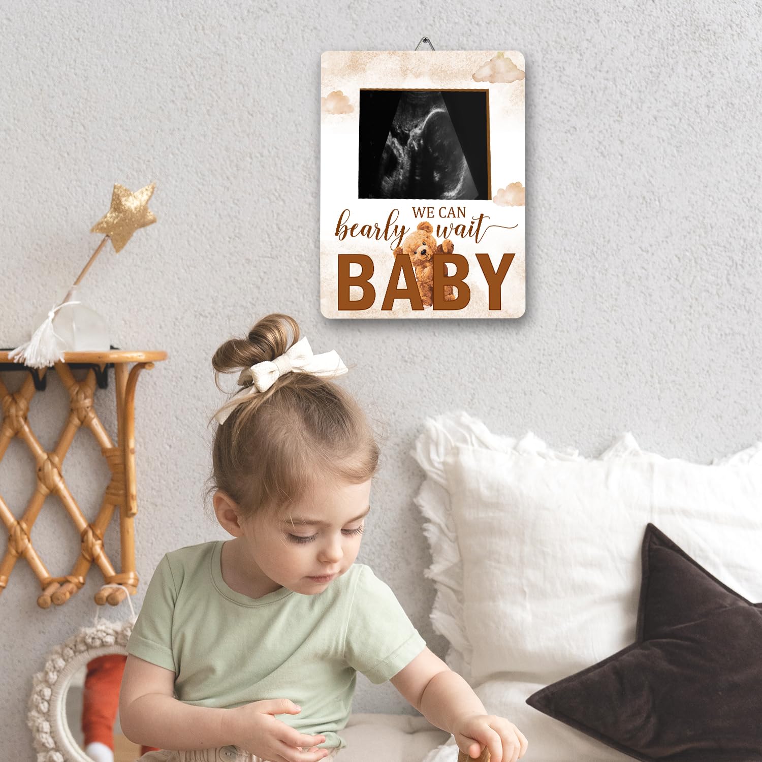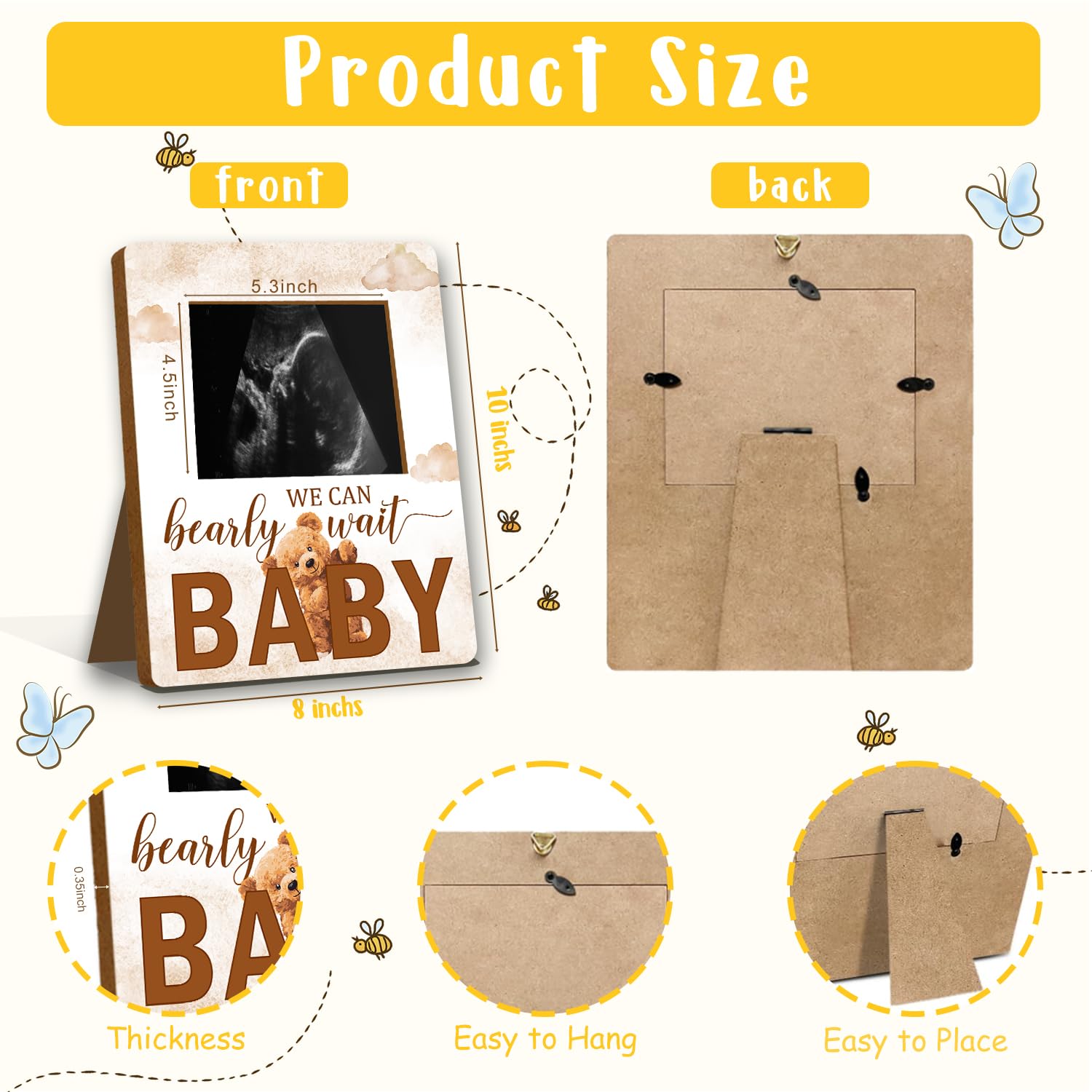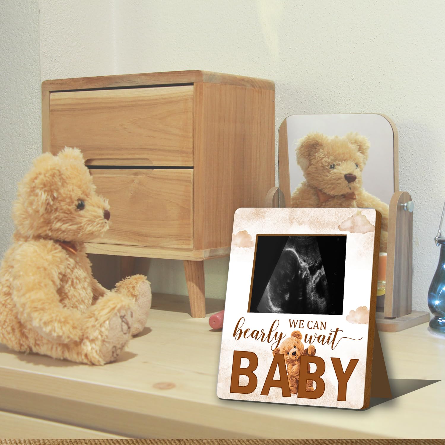 Material: This Bear baby ultrasound photo frame for expectant parents, has clear printing and is made of wood material. It is sturdy and not easily damaged and can be used by you for a long time.