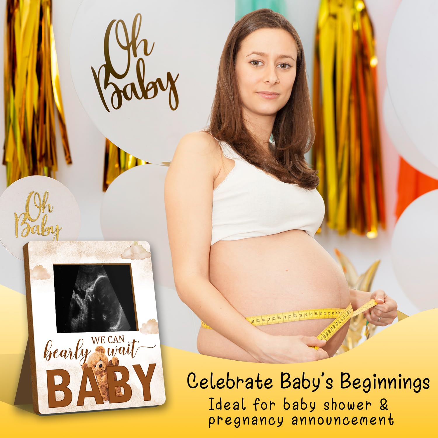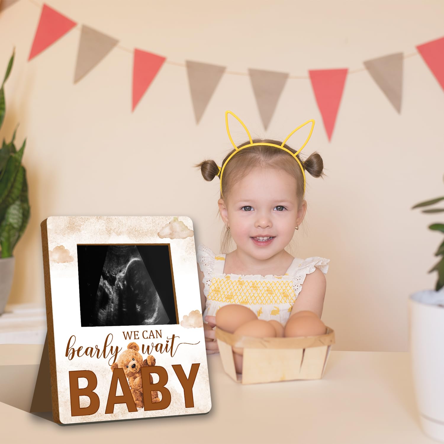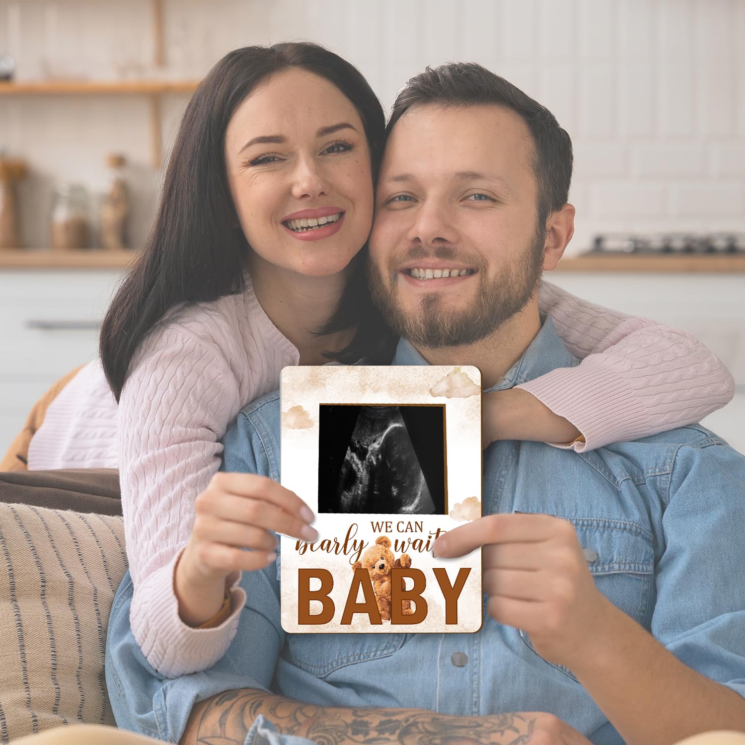 Material: This Bear baby ultrasound photo frame for expectant parents, has clear printing and is made of wood material. It is sturdy and not easily damaged and can be used by you for a long time.