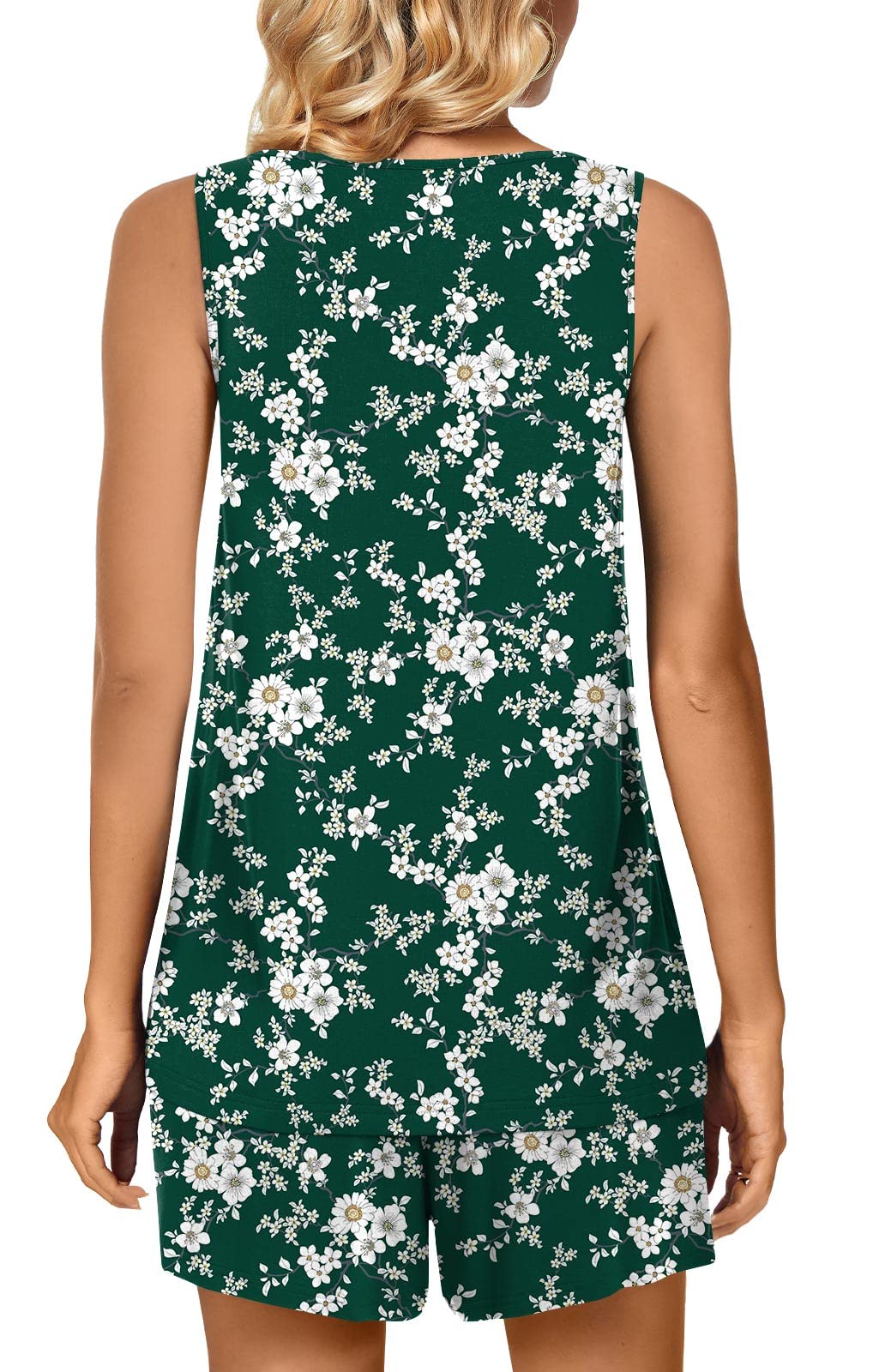 Fashion Simple Design: The ladies pajamas sets sleeveless tank tops with pleated, scoop neck design. Womens pajamas set tops perfect length covers what you need it to like your tummy. The bottoms are very roomy and fit nice with an elastic waistband adapting to different body shapes for all-night comfort. Pajamas bottoms have nice deep hidden pockets to hold cell phone or small things