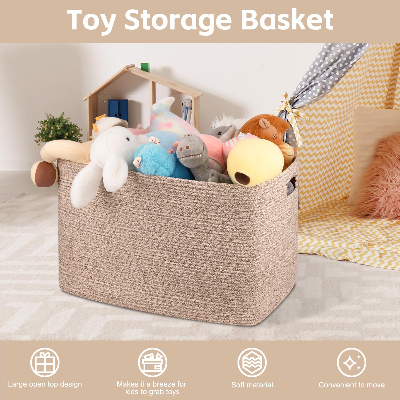 OIAHOMY 118L XXXLarge Cotton Rope Storage Basket, Oversized Blanket Basket, Used for Organizing Dirty Clothes in Living Room, Bedroom, Nursery, Dog Toy Storage Bins, 25" x 17" x 16",Brown variegated
