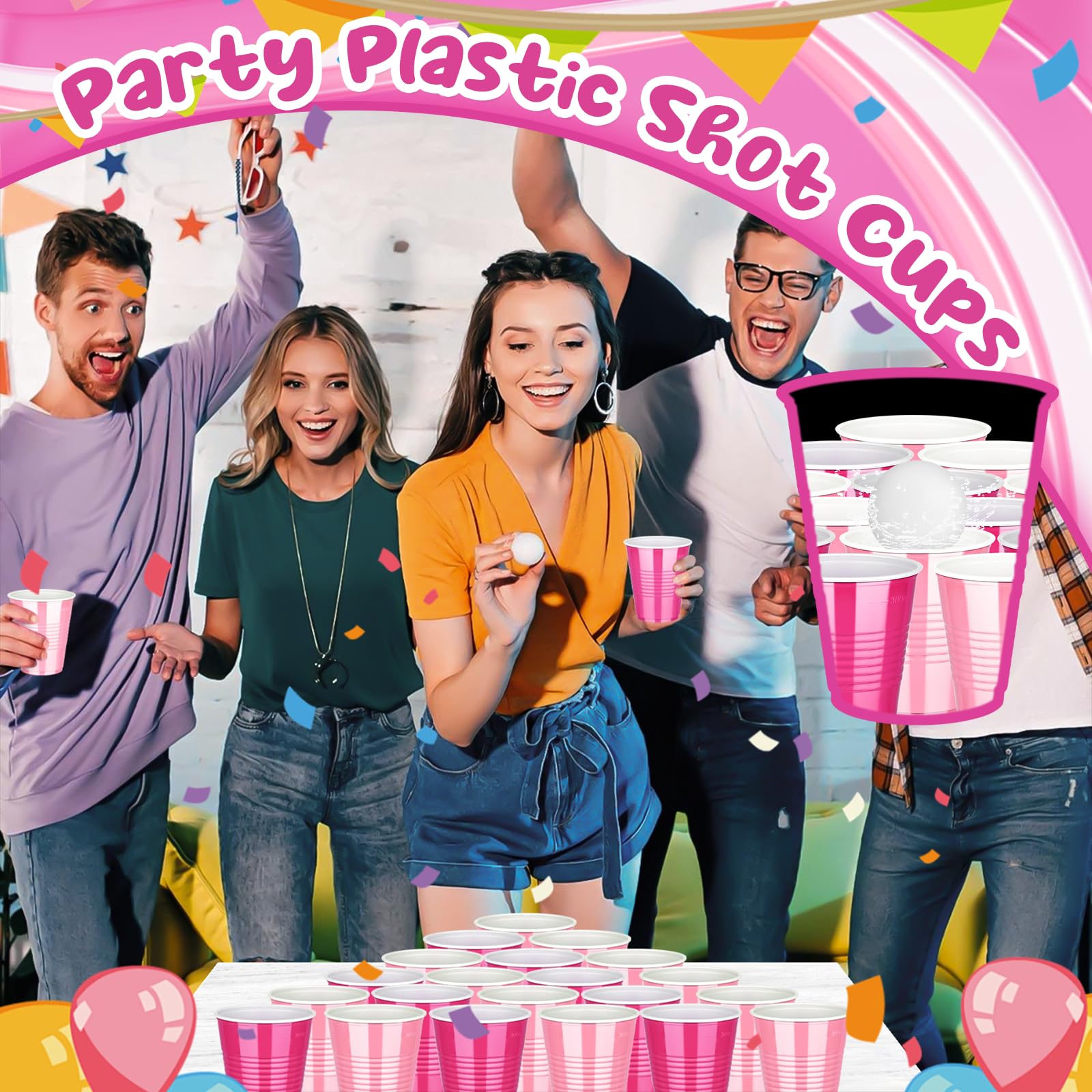 Versatile Use: The party drinking cup are suitable for various occasions, not only including bachelor parties, New Year, Christmas, Valentine's Day, Galentine's Day, birthday parties, weddings, family gatherings, holiday parties and festive celebrations, but can also be applied during graduation season. Additionally, the light pink cups and hot pink cups can be used as props in tabletop games or as snack cups, these cups add a splash of color and practicality to any setting
