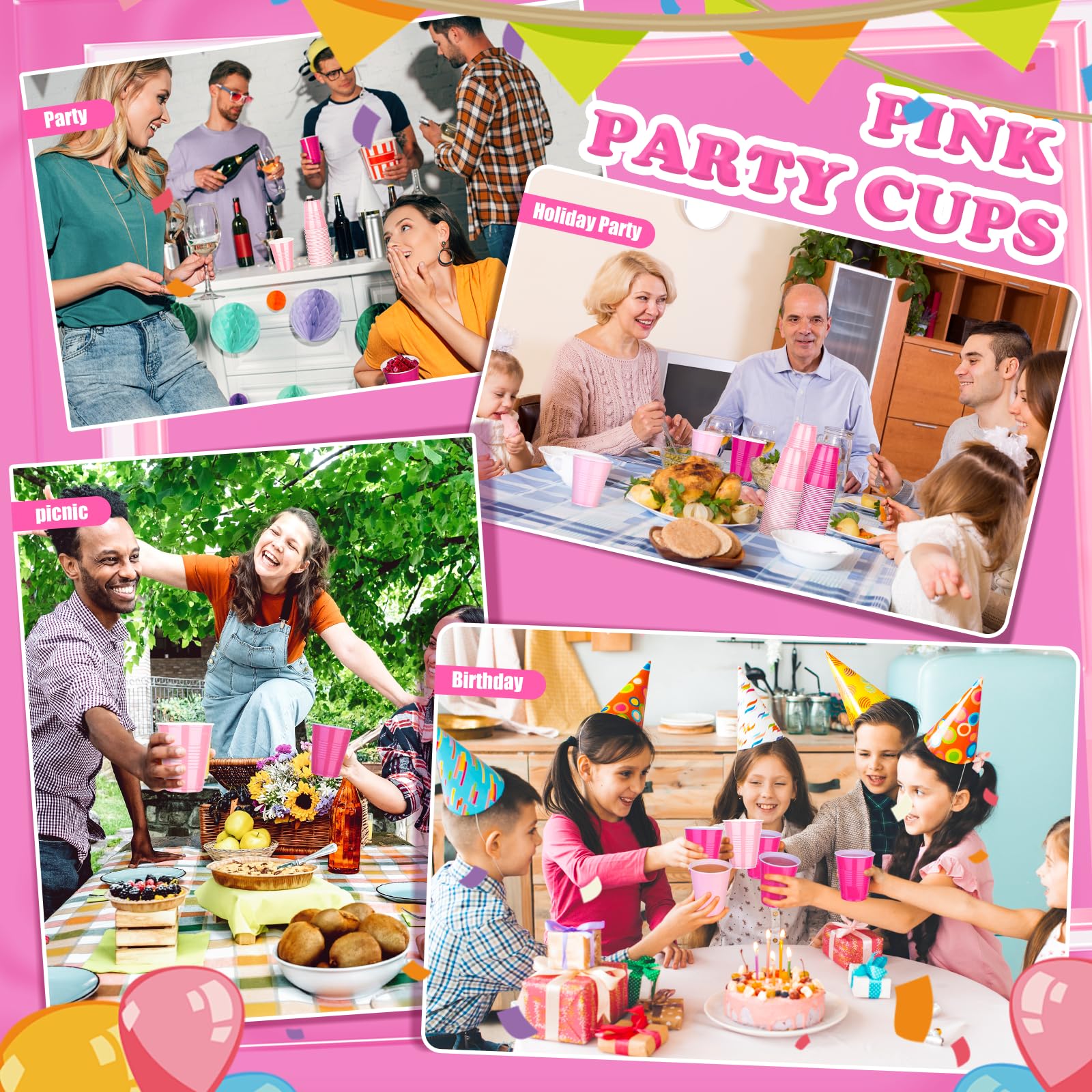 Time-Saving & Space-Saving: These plastic disposable cups are stackable design which allows for efficient storage space utilization. And these light pink cups and hot pink cups are reusable but also disposable, for party eliminate the need for washing and can be easily discarded after use, saving you a significant amount of cleaning time and allowing you to fully enjoy your event with convenience and happiness