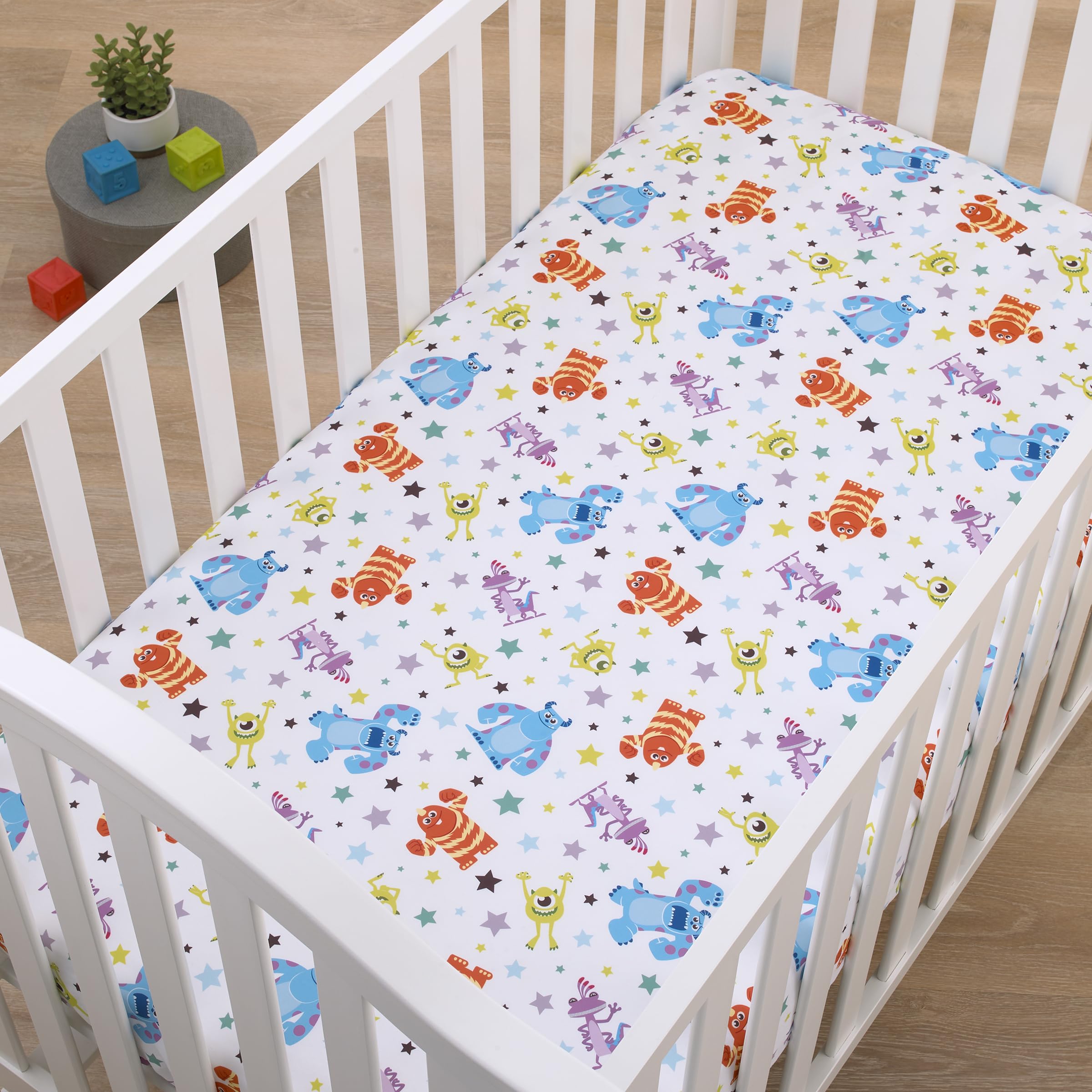 Have some scary fun with Disney's Monsters Inc., Fitted Mini Crib Sheet!
