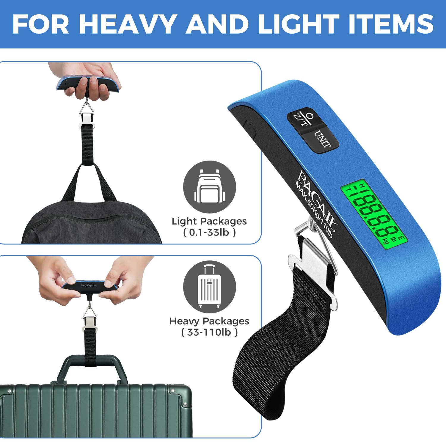 High Accurancy: Capacity with 110 lbs/50 kg, 0.1 lb/50 g precision; Its high accuracy helps you avoid overweight fees; Unit: lb/kg (convertible)