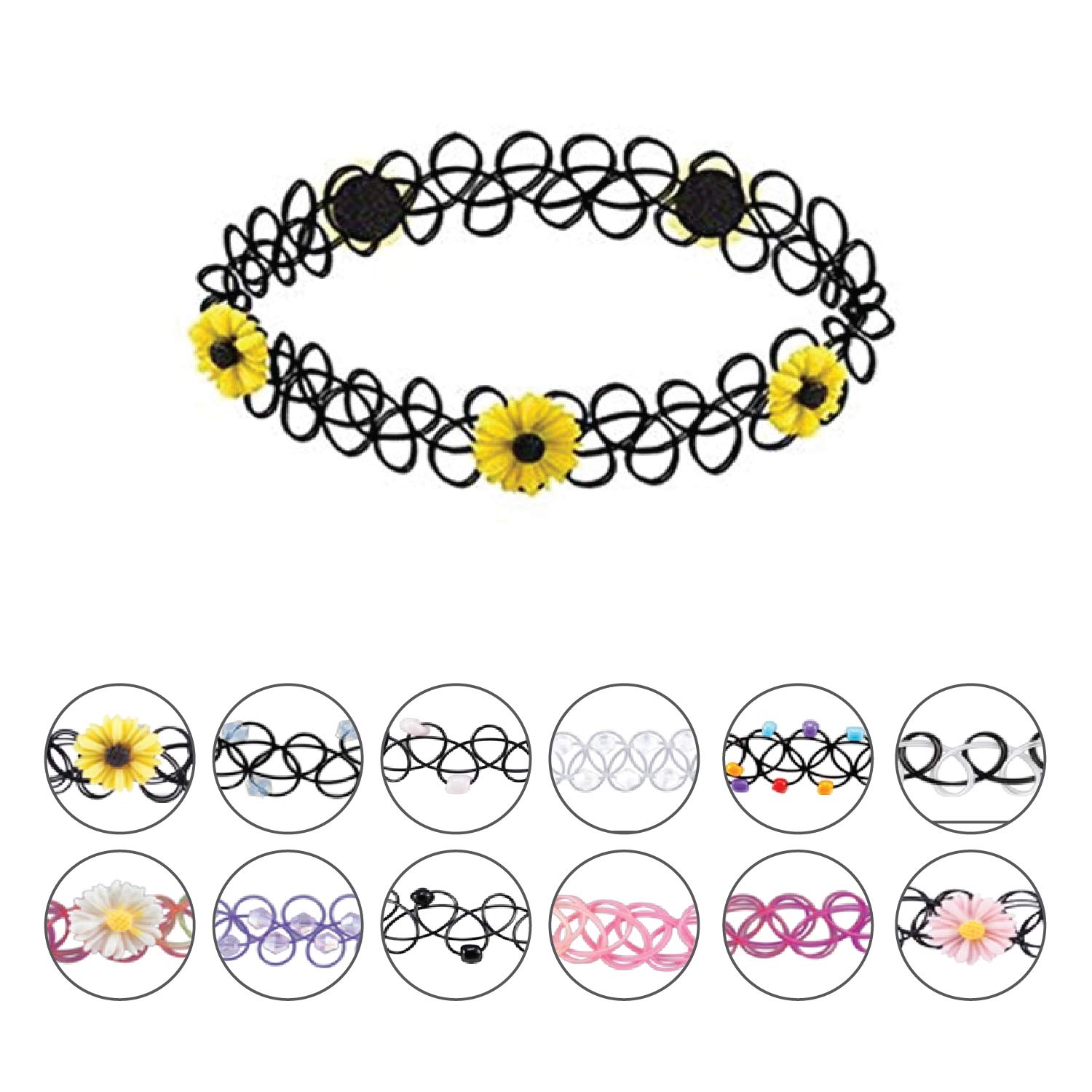 STRETCHY VINTAGE CHOKER NECKLACE: Inspired by 90s Henna Tattoo Designs, This Elastic Necklace Fits Comfortably and Complements a Variety of Styles - Perfect for Pairing with Classic Black Dress, Gothic Looks, 2000s-inspired Outfits, Rock Concerts, Beachwear, Halloween Costumes, or Holiday Parties