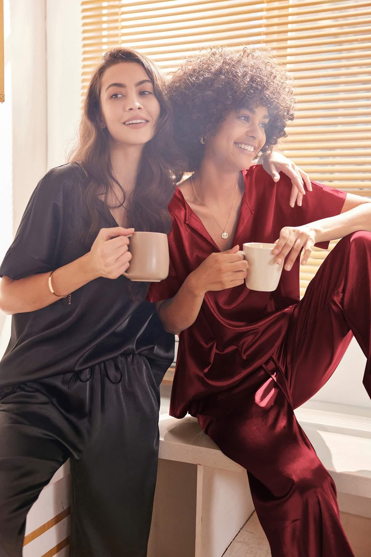 Ekoauer silky pjs set is luxuriously stylish! If it is wrinkled, you can steam it before you wear it. Please note that dark colors may fade, please wash before wearing, machine washable