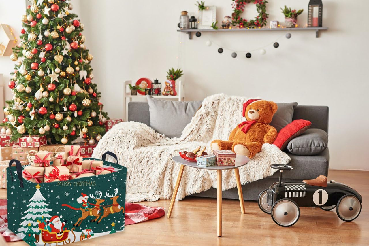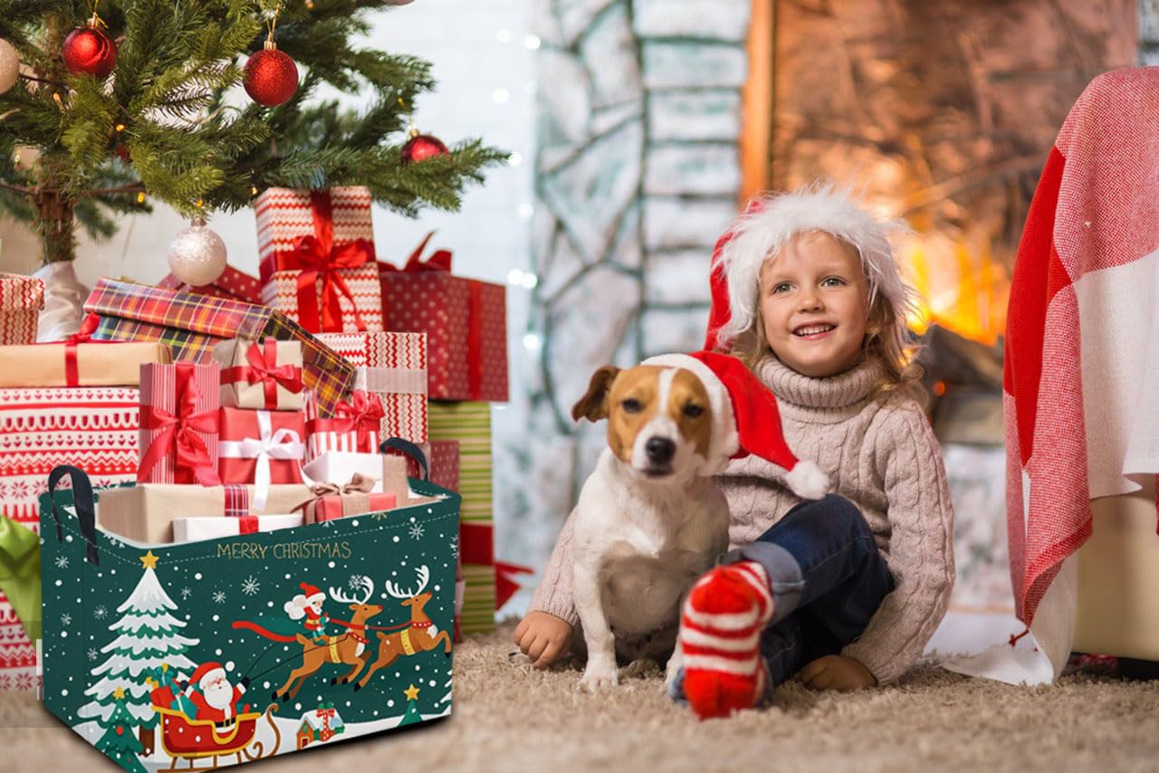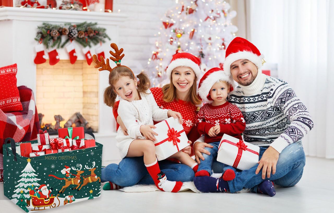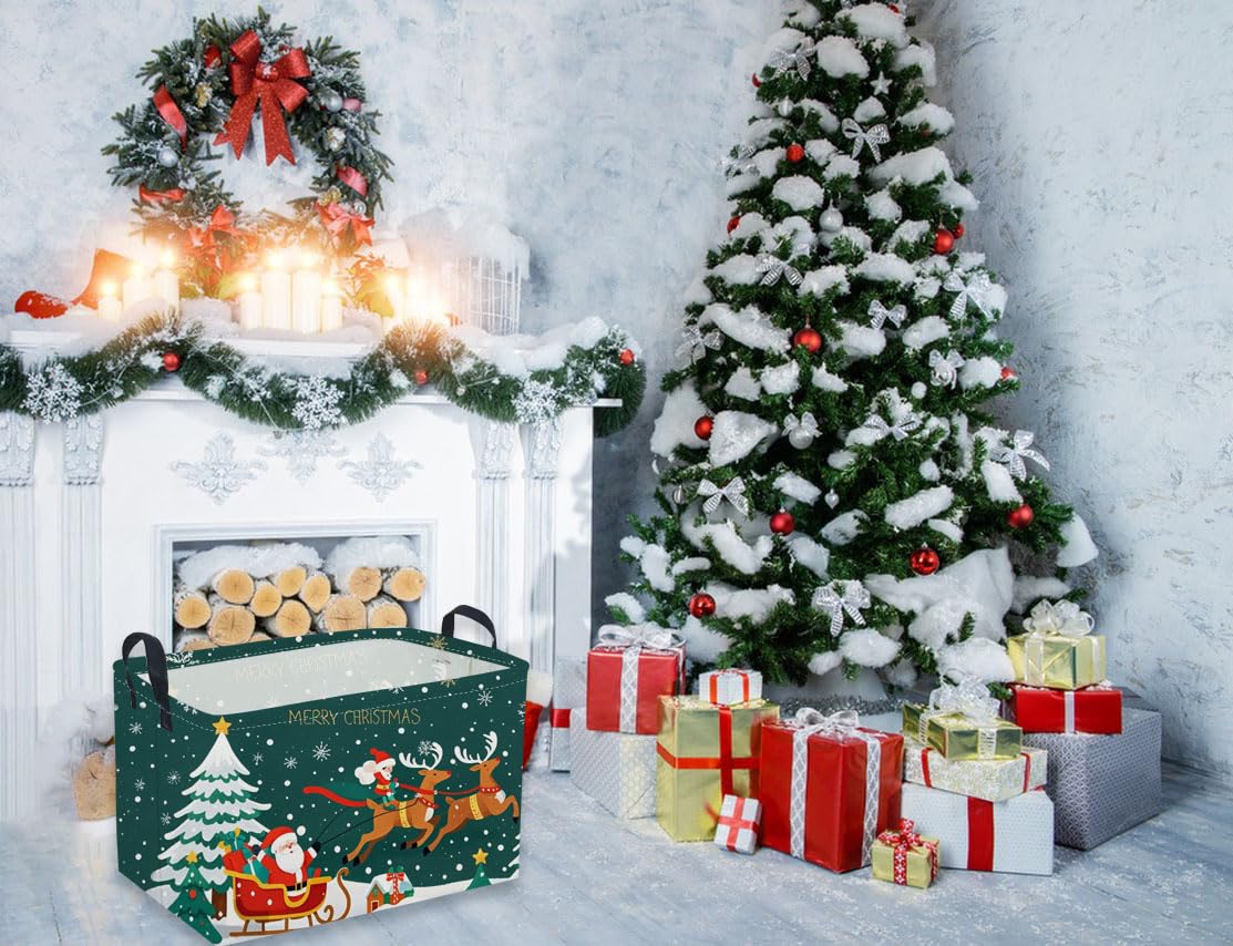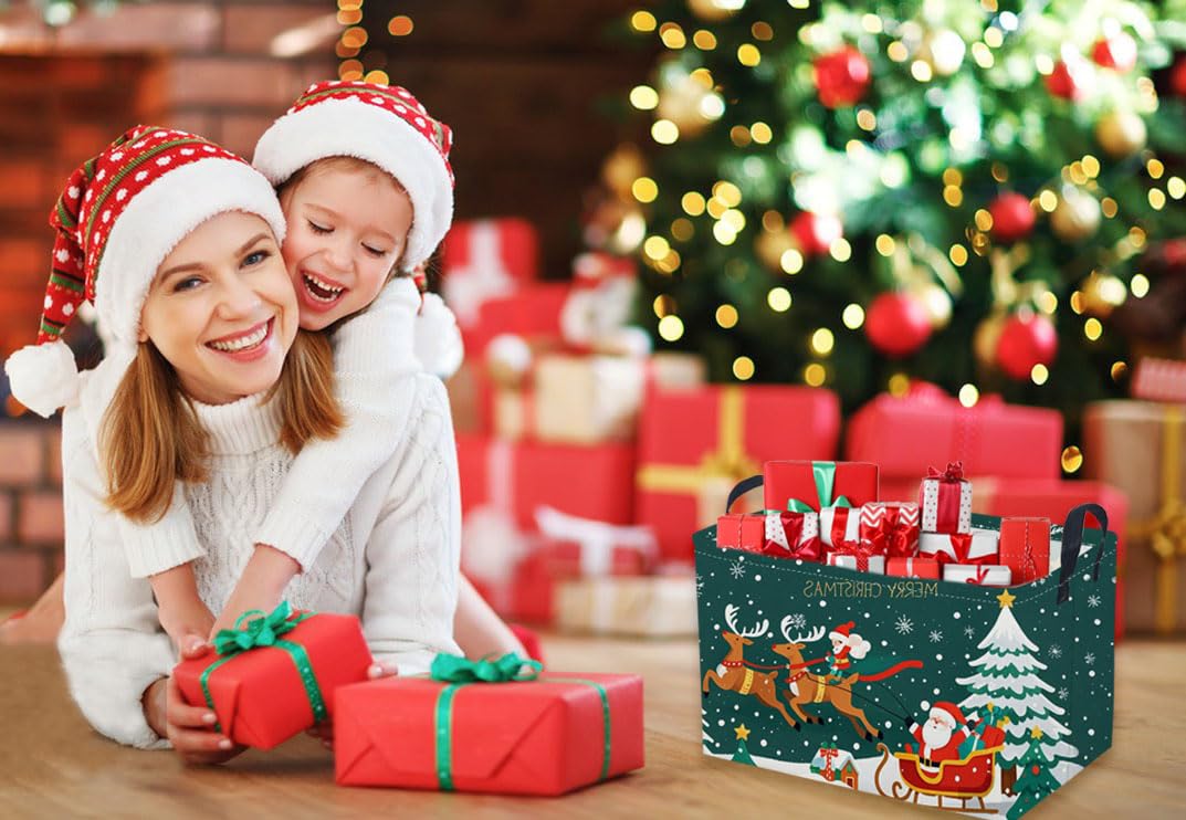 Sanjiaofen Rectangular Christmas Baskets,Snowman Basket Empty,Waterproof PE Coating Cute Bins for Kids with Handles,Gifts Baskets,Books Bin. (Sled Christmas)