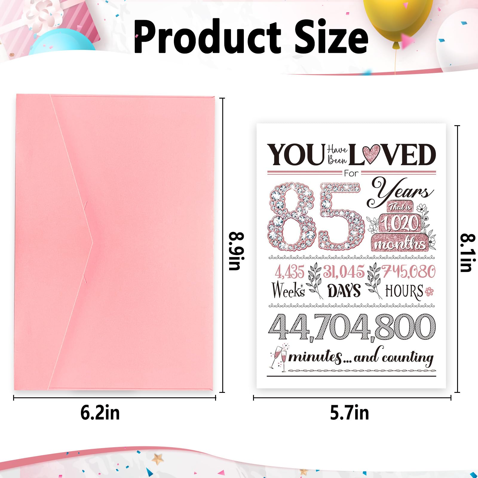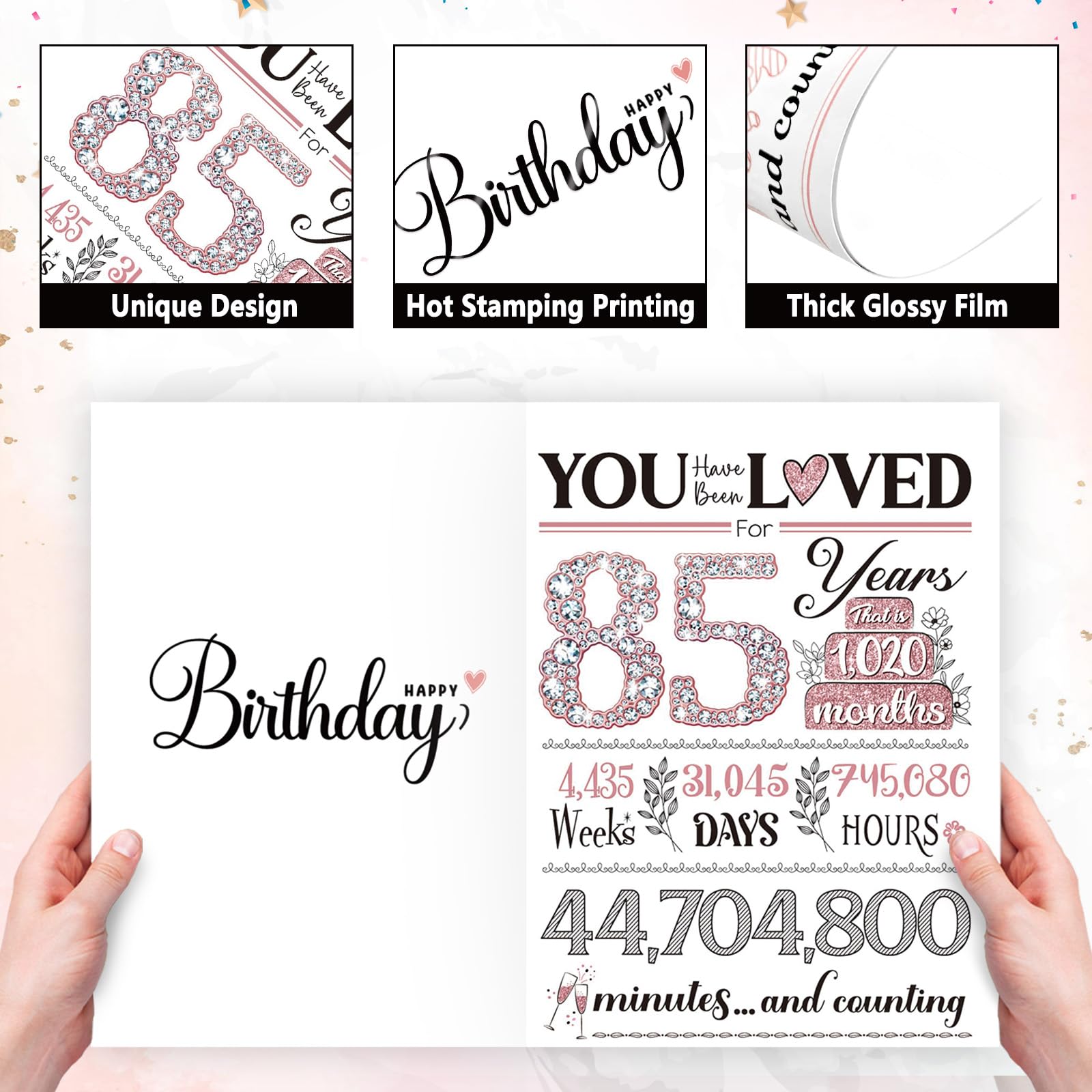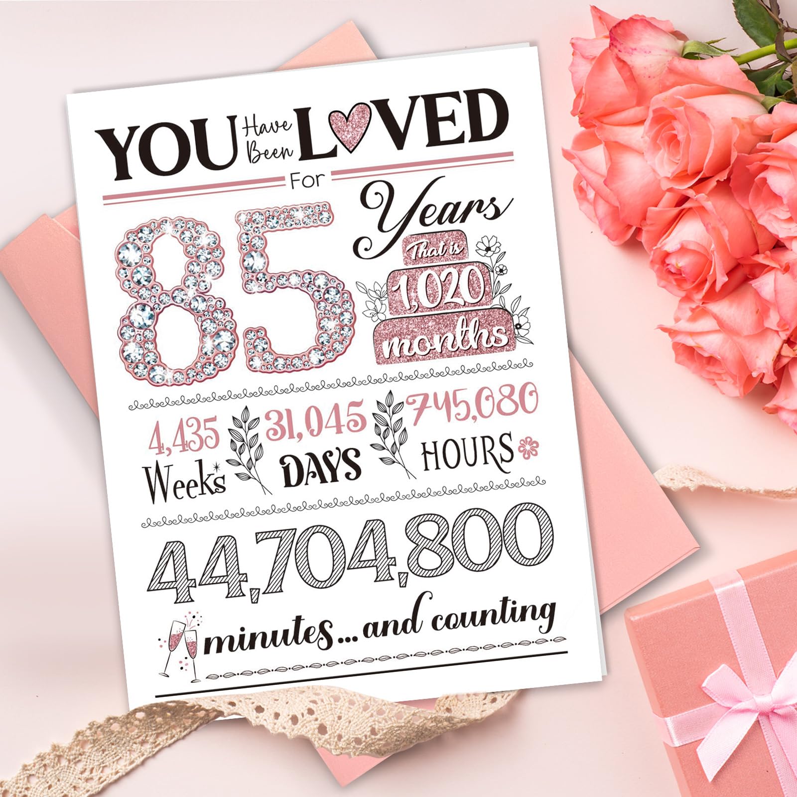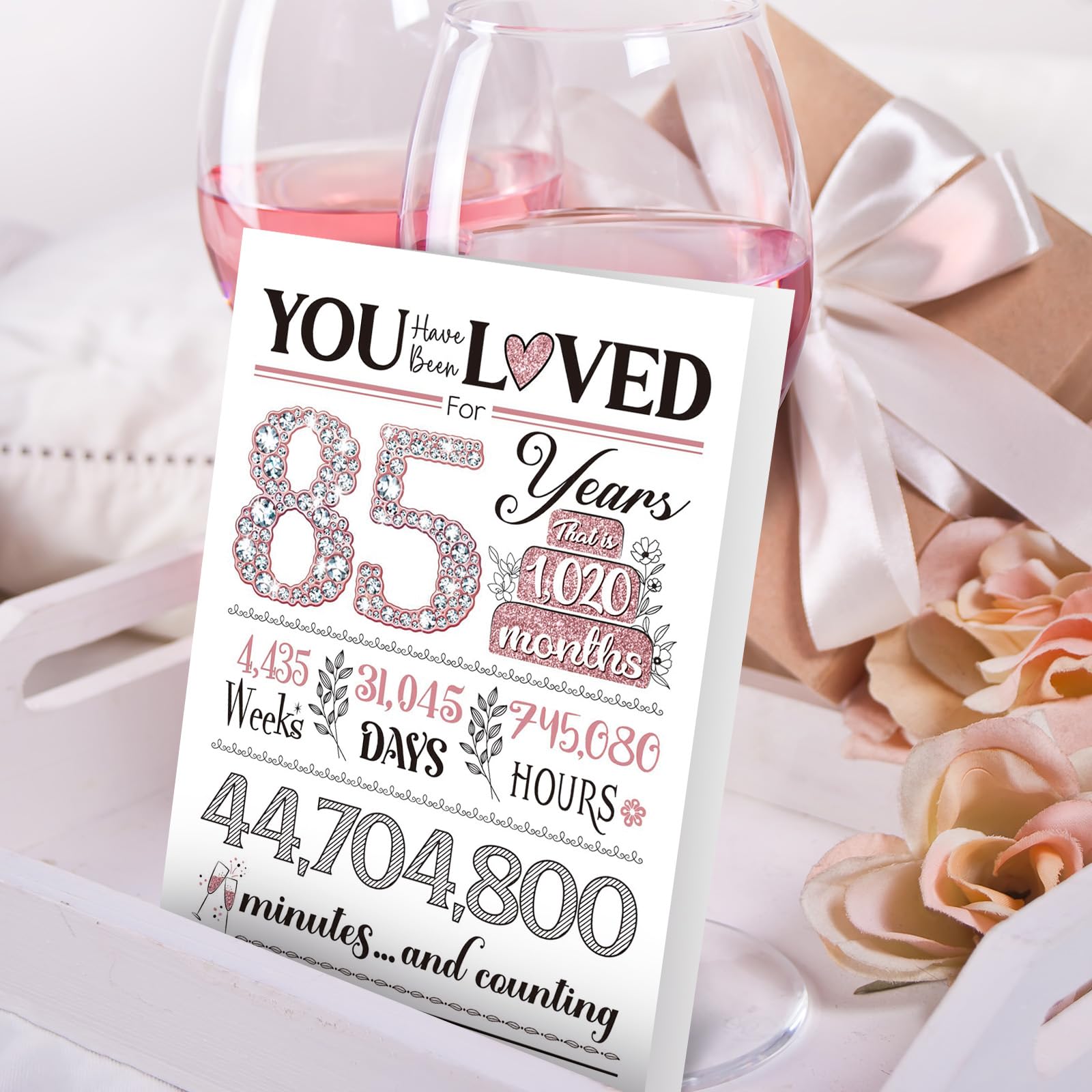💎INNOVATIVE DESIGN: Designed in black & pink, the nice birthday cards showcase a dazzling, diamond-like 85, symbolizing her radiance and pride. The words 'you have been loved,' and the time-themed composition of the 85-year-old design conveys the preciousness of every moment of her existence, which is perfect gifts for 85th birthday.
