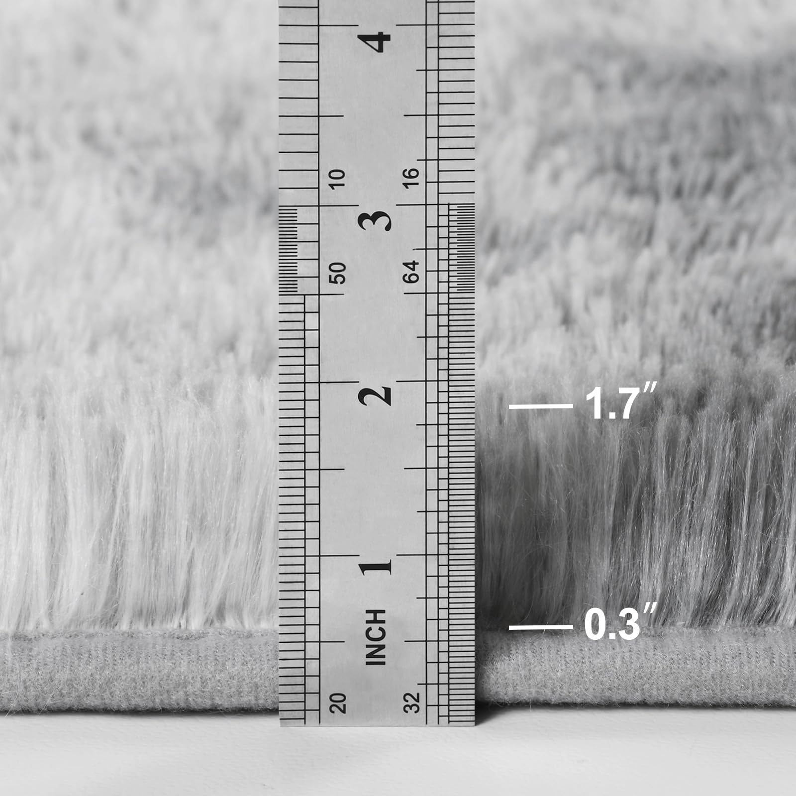 Ultra Soft Fluffy Rug: Because of the plush fur on the light grey rug, you'll feel like walking on the clouds when walk barefoot on the large bedroom rugs. Besides, the high pile shag soft carpet will also shield you from the cold floor, and stay fixed in place with latex dots backing.
