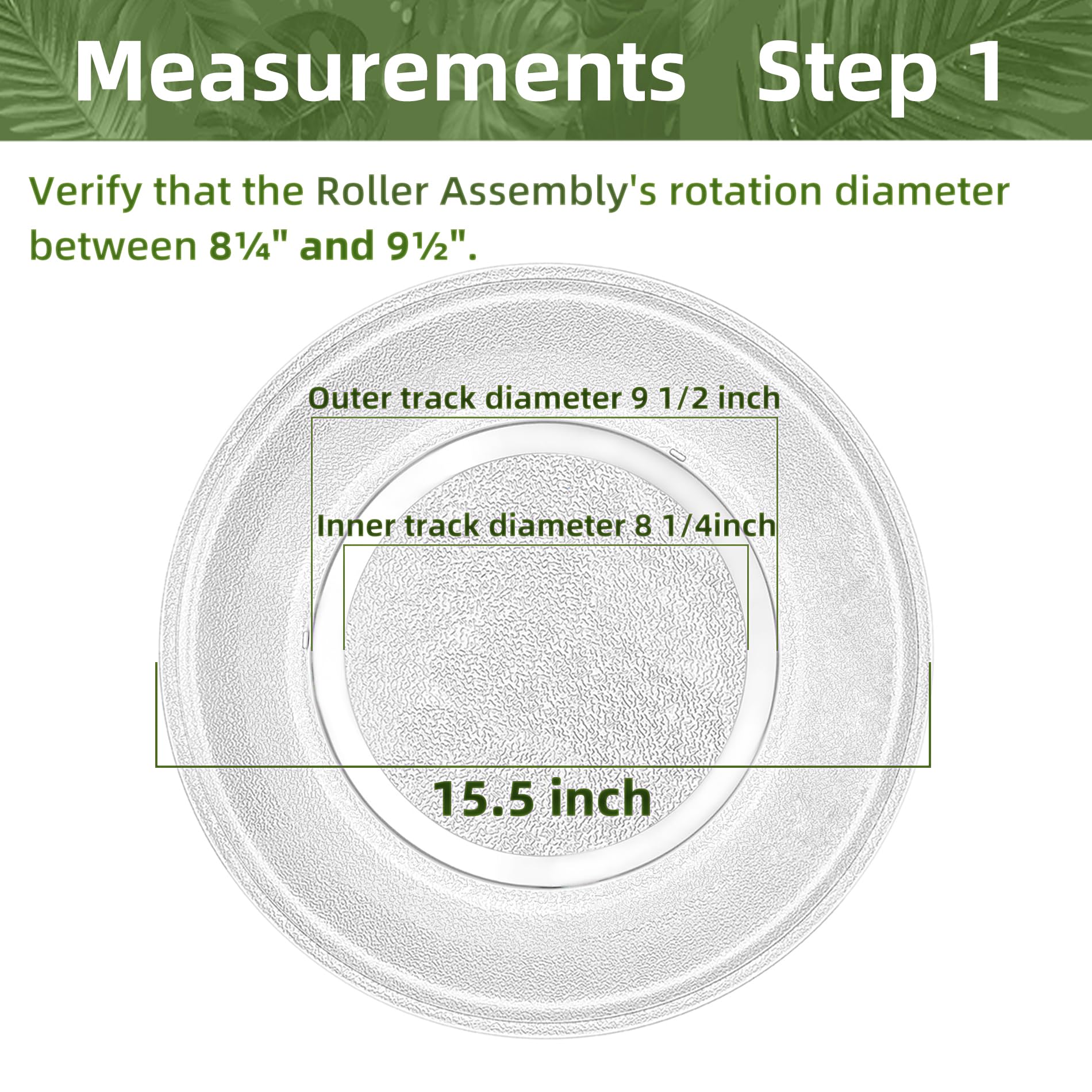 【Measurement 1】 This 15.5" microwave glass turntable plate is a flat-bottom glass plate, compatible with a roller assembly of 4 3/4-inch radius. (The measurement is taken from the outermost edge of the roller to the center of the roller assembly)