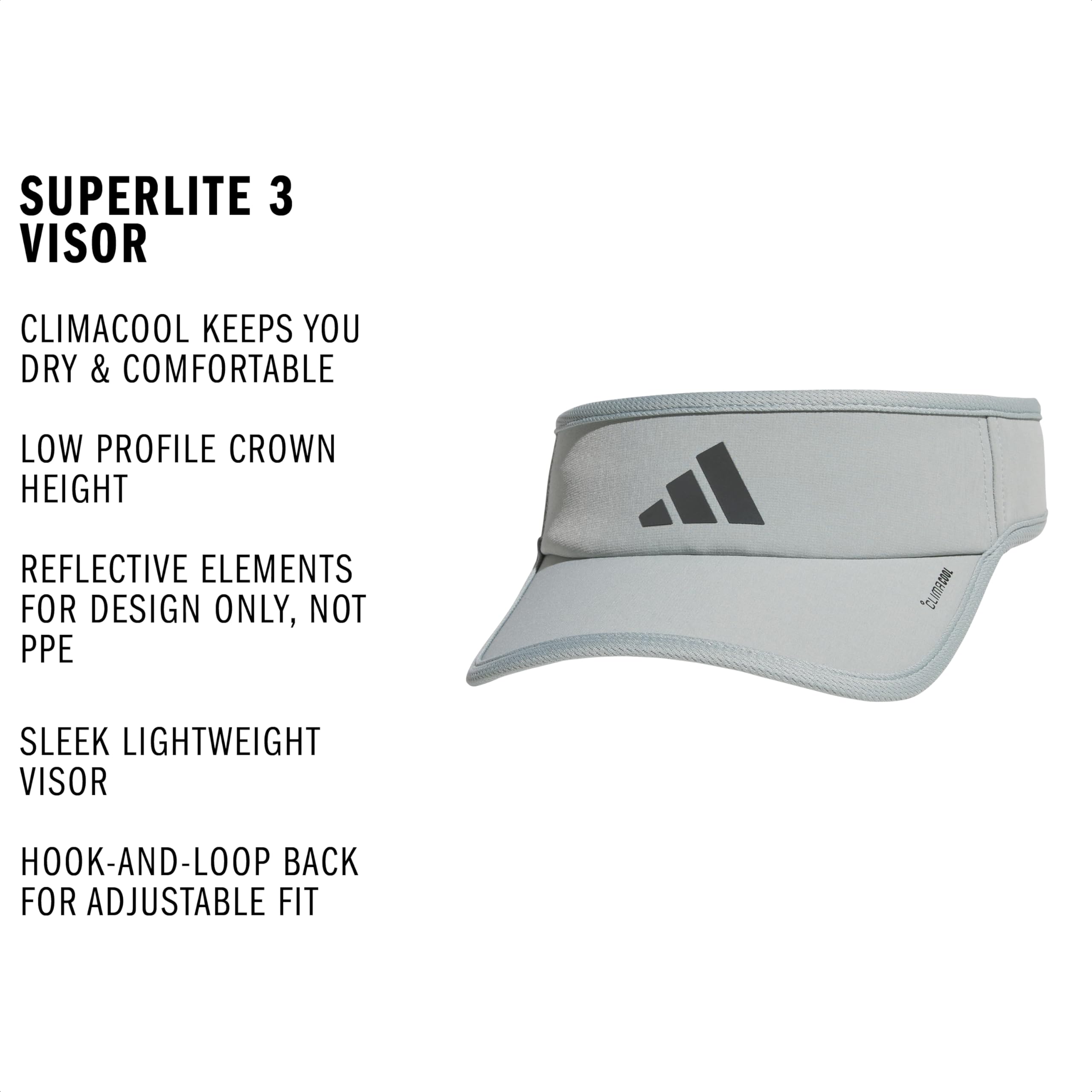 Description An ultra-lightweight option, whether you're on the tennis court or the fairway. This adidas visor is made with mesh to help you stay cool and dry. It adjusts at the back for a custom fit. This product has reflective elements for design and decoration reasons only. It is not intended or suitable for the use as Personal Protective Equipment PPE (e.g. to protect by enhanced visibility) and would not meet mandatory PPE standards