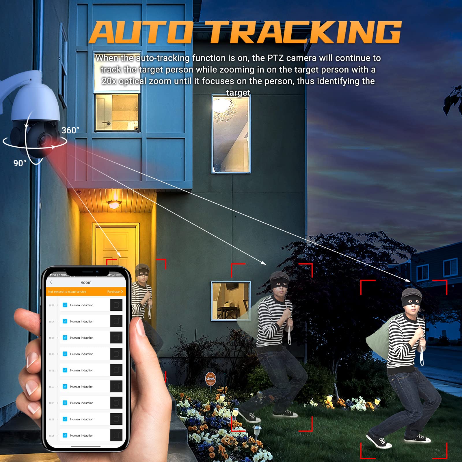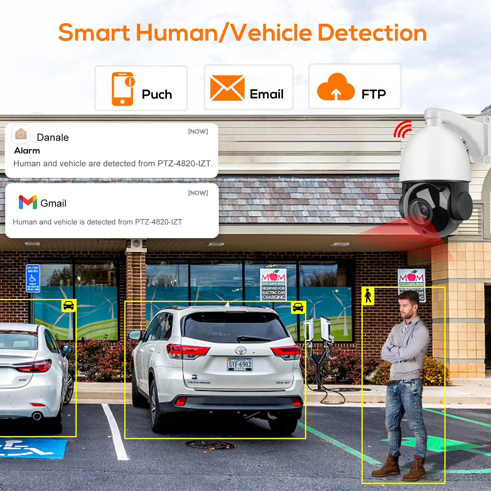Smart Detection & Auto Tracking — Advanced human/vehicle detection based on leading-edge detection algorithms helps to identify true threats and filter playbacks accordingly. It also tracks the moving targets automatically and keeps an eye on suspicious activities for you.Instant push notifications and email alerts allow you to deter the uninvited immediately.