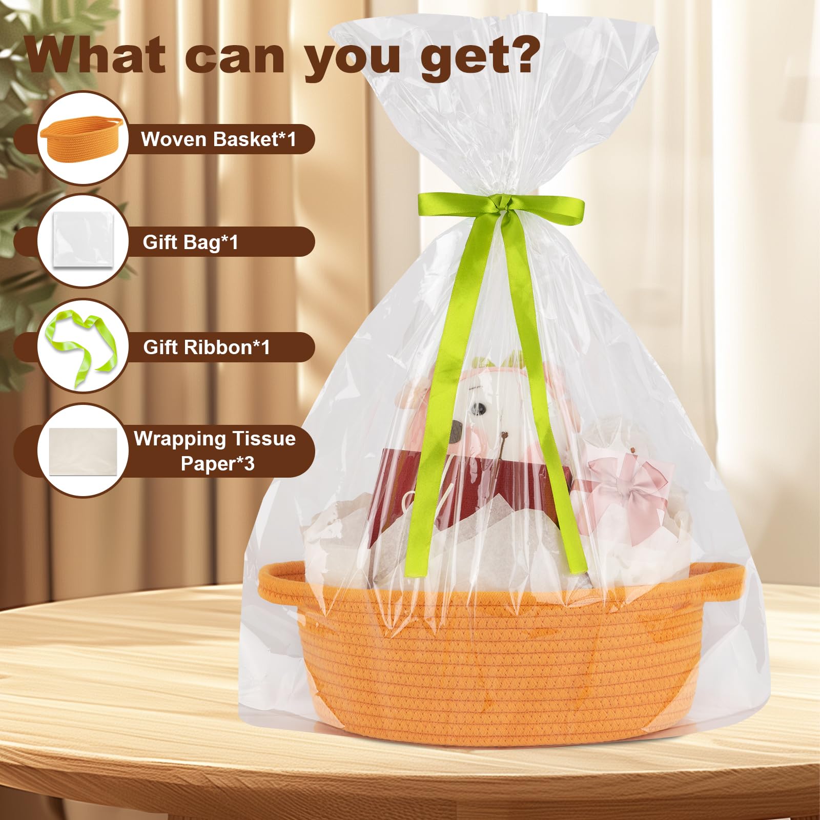 Ideal gift choice: This empty gift basket is cute and stylish, each small basket comes with a gift bag and ribbon, as well as 3 sheets of gift wrap tissue paper, which can better decorate, protect the stored items and can be used as a gift basket at any time
