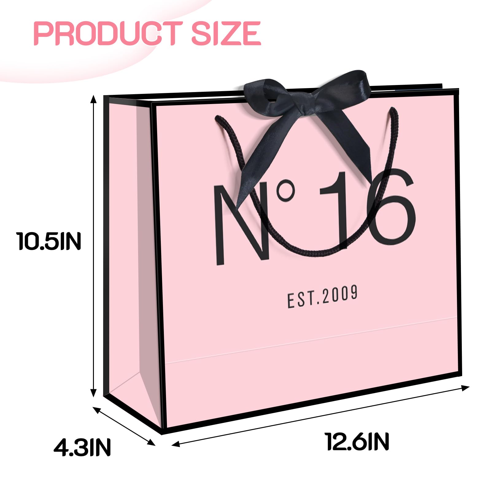 With specific meaning 'N°16 EST.2009 is printed on one side of the gift paper bag.For 16th birthday gifts,wedding anniversary,birthday party favors,anniversary and more.