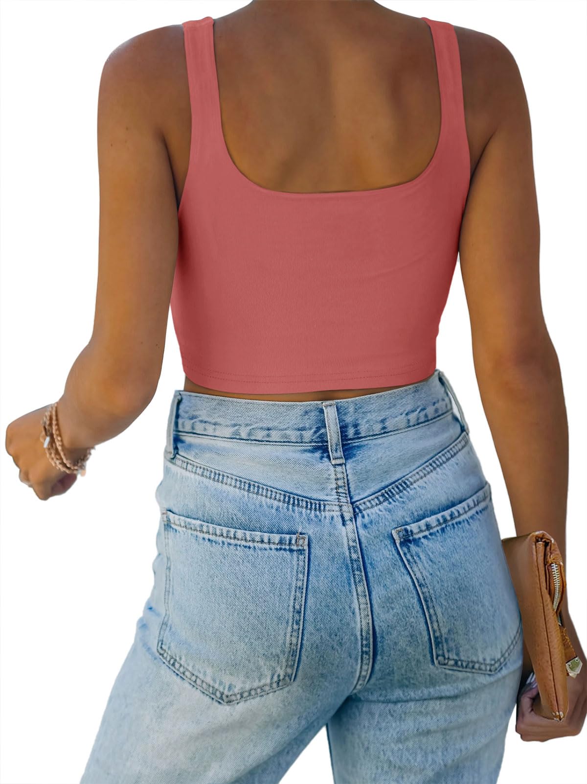 🌸Versatile,can be worn in many different ways!This square neck crop top for teen girls/women is basic and chic.Cute with yoga pants, joggers,skirts or high waist jeans!