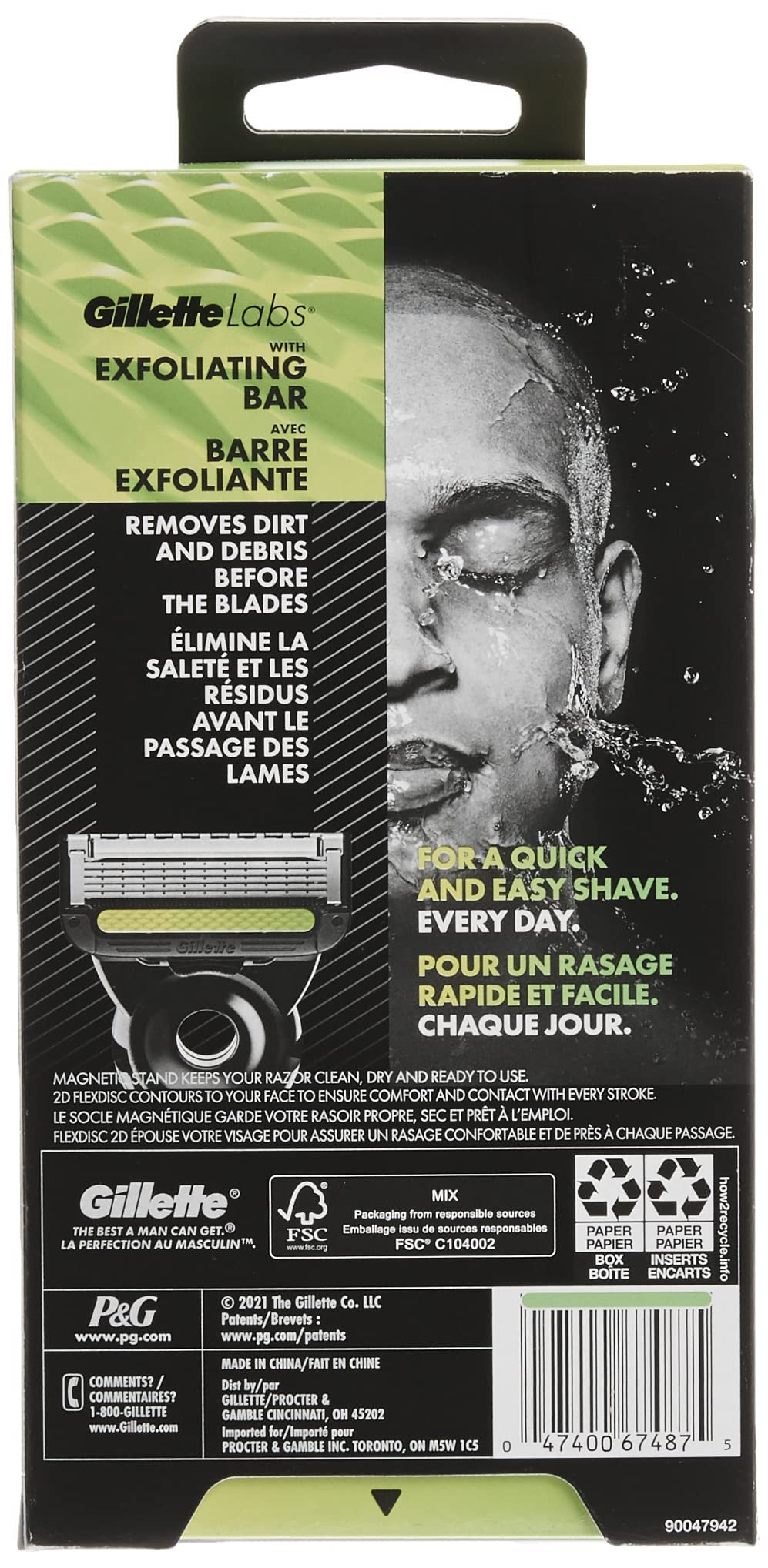GilletteLabs with Exfoliating Bar by Gillette is the world’s first razor with exfoliating technology built into the handle—for a shave as quick and easy as washing your face. The innovative razor makes shaving fast and effortless by removing dirt and debris before the blades pass for a smooth shave that's quick and easy. 2D FlexDisc technology contours to your face to ensure comfort and contact with every stroke. Featuring Gillette's best razor blades, this razor is designed for a quick and easy shave and lasts for up to 5 years. When you’re finished shaving, put your razor into its premium magnetic stand that keeps your razor clean, dry and ready to use. Use with GilletteLabs razor blade refills which are compatible with both the GilletteLabs with Exfoliating Bar and the GilletteLabs Heated Razor gift set. Choose between a refreshing and exfoliating shave or the soothing warmth of a hot towel shave. The perfect gift for men, this razor represents the next evolution in male shaving. Feel the difference.