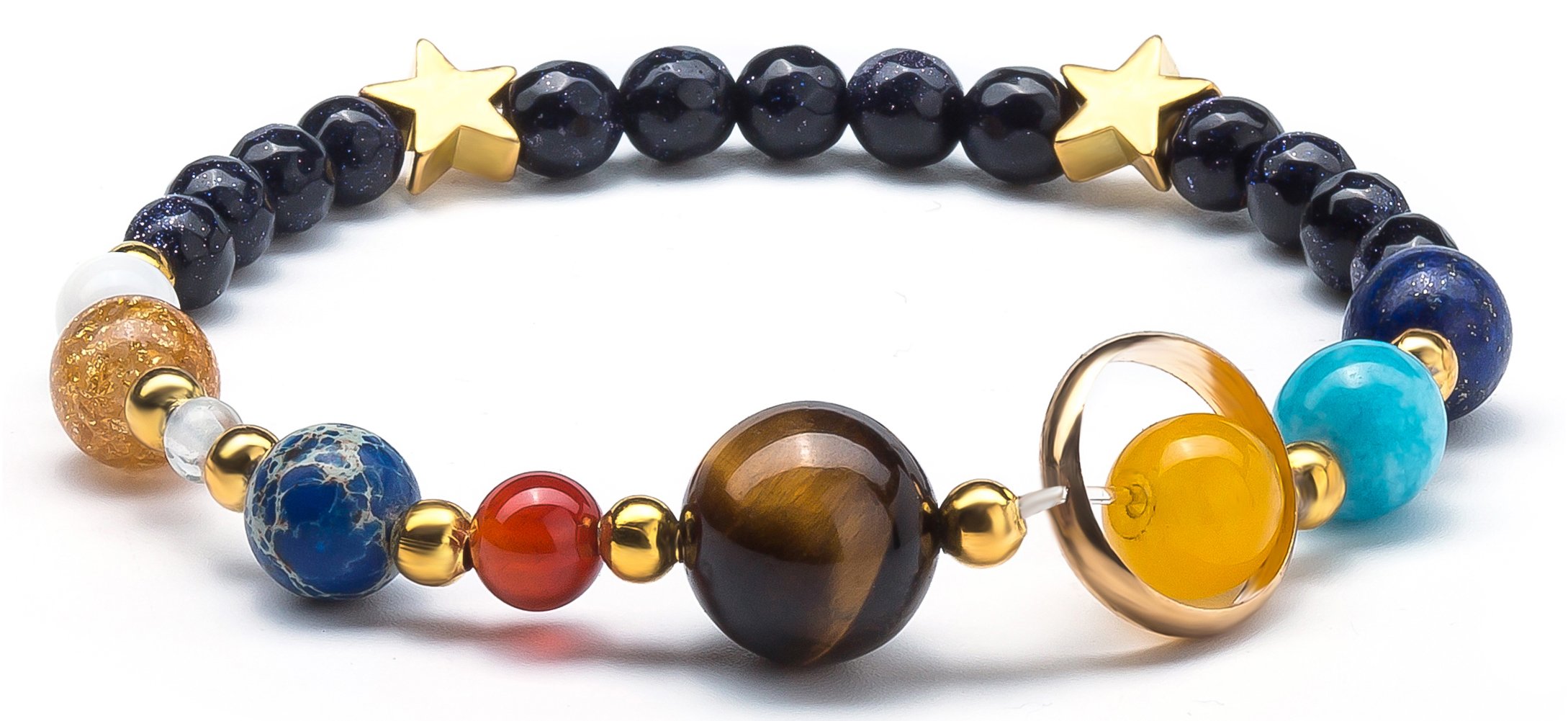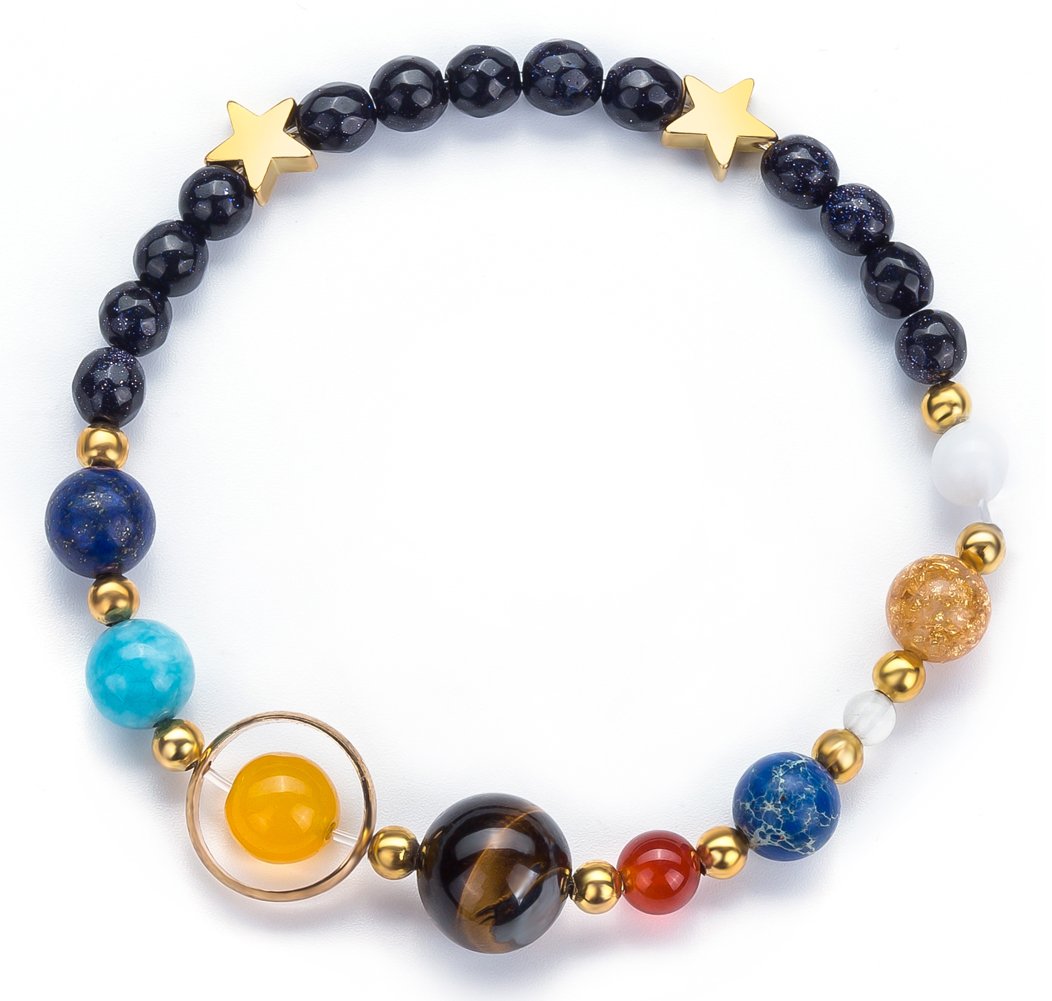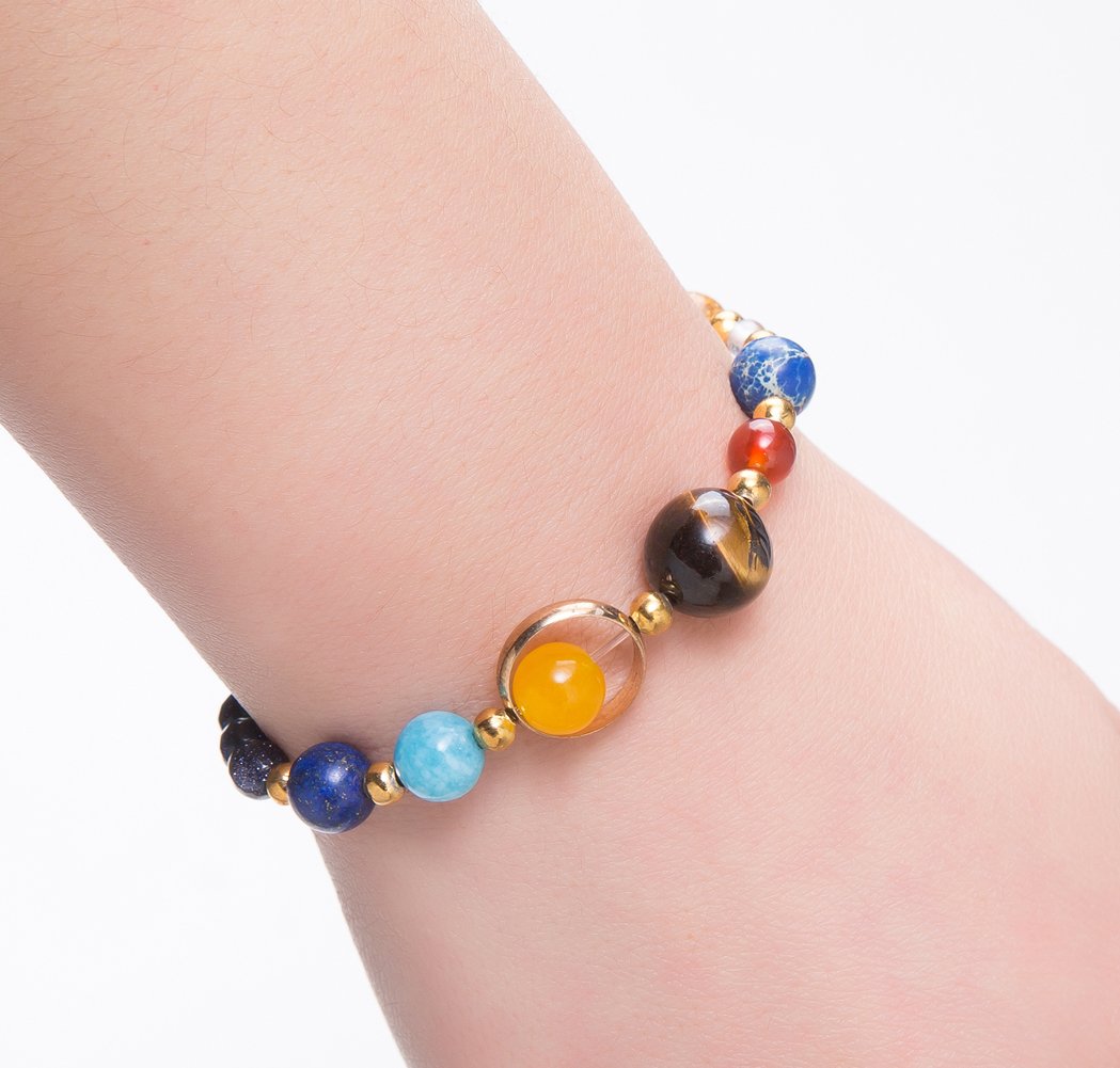 Crafted from high-quality materials, the Planetary Bracelet combines both durability and beauty. The bracelet's adjustable band ensures a comfortable fit for all wrist sizes, while the vibrant colors and intricate patterns of the planet beads add a touch of cosmic elegance to any outfit.