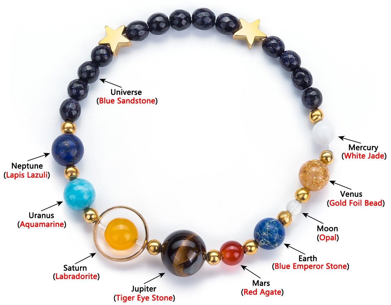 Each bead on the Planetary Bracelet is carefully designed to mimic the distinct appearance of its corresponding planet, from the fiery reds of Mars to the icy blues of Neptune. This attention to detail not only enhances the visual appeal of the bracelet but also serves as a subtle nod to the wonders of our universe.