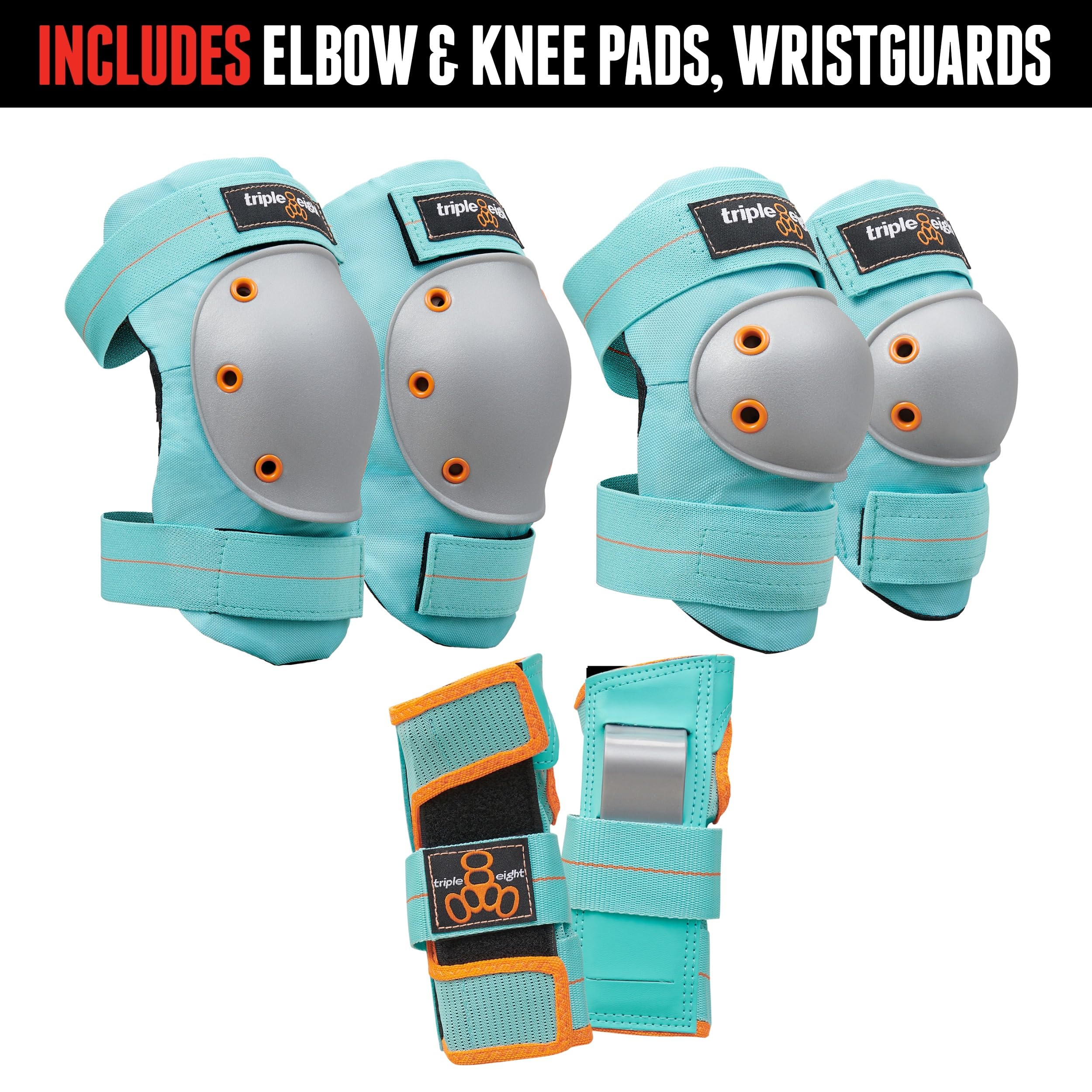 All-in-one Skate Set: Includes one pair each of Kneesaver knee pads, Elbowsaver elbow pads, and Wristsaver wrist guards for kids and adults