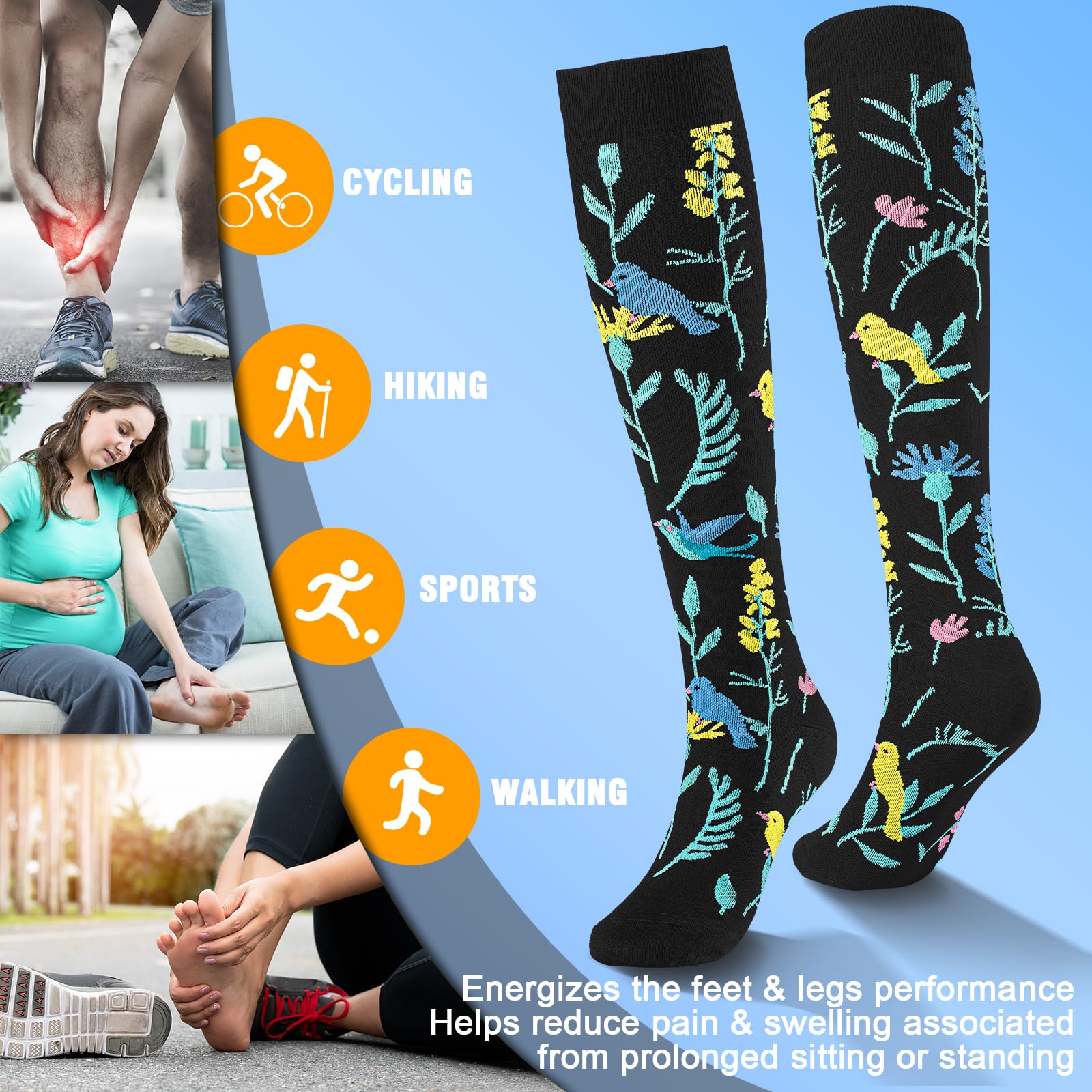 ✅WHY WE DESIGN COMPRESSION SOCKS - More and more people like to exercise, such as running, hiking, walking, but the wrong way of sports is particularly easy to hurt, especially when playing basketball, if you do not stretch before and after exercise, it will cause muscle clumps,Swelling, cramps and stiffness,Our designer discovered this problem in sports and developed this sports copper compression sock.Compression for Women & Men --- Perfect Choice