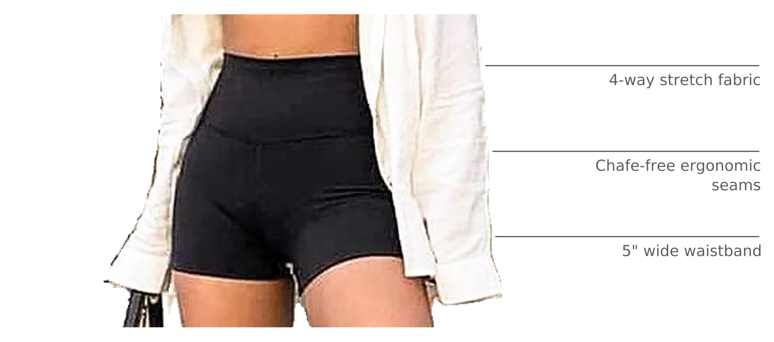 APPLICABLE OCCASION : Grab a pair of black yoga short for a day at the office, and pack a pair of the shorts for happy hour. Add a pair of heels to both, and you have a perfect look. For happy hour, add a crop top and jacket, and you will get all of the attention.Gusseted crotch for greater freedom of movement. Can be weared then under dresses or skirts as well to prevent chub-rub.