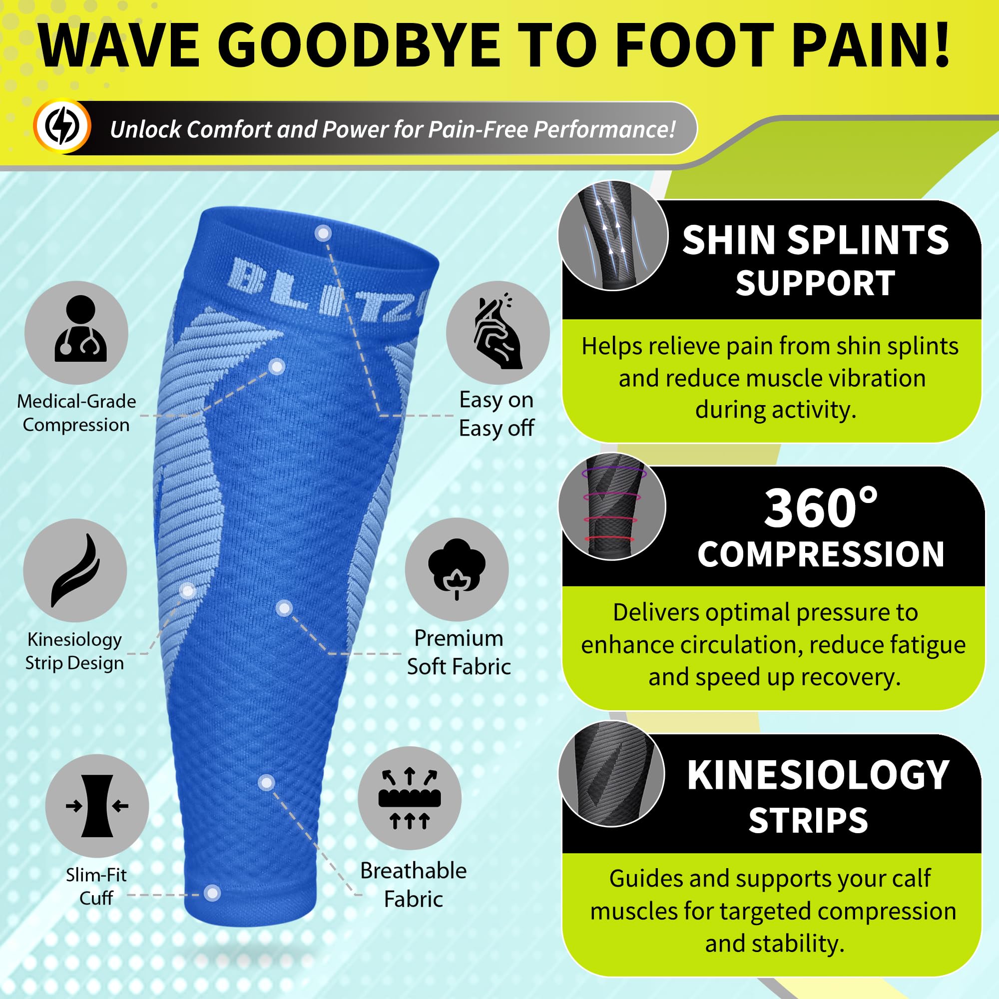 Effective Compression for Swelling & Varicose Veins Relief: The BLITZU Calf Compression Sleeves feature graduated compression to improve blood circulation, reduce swelling, and alleviate discomfort caused by varicose veins and pregnancy-related leg swelling, making them perfect for nursing mothers and individuals with circulation issues.