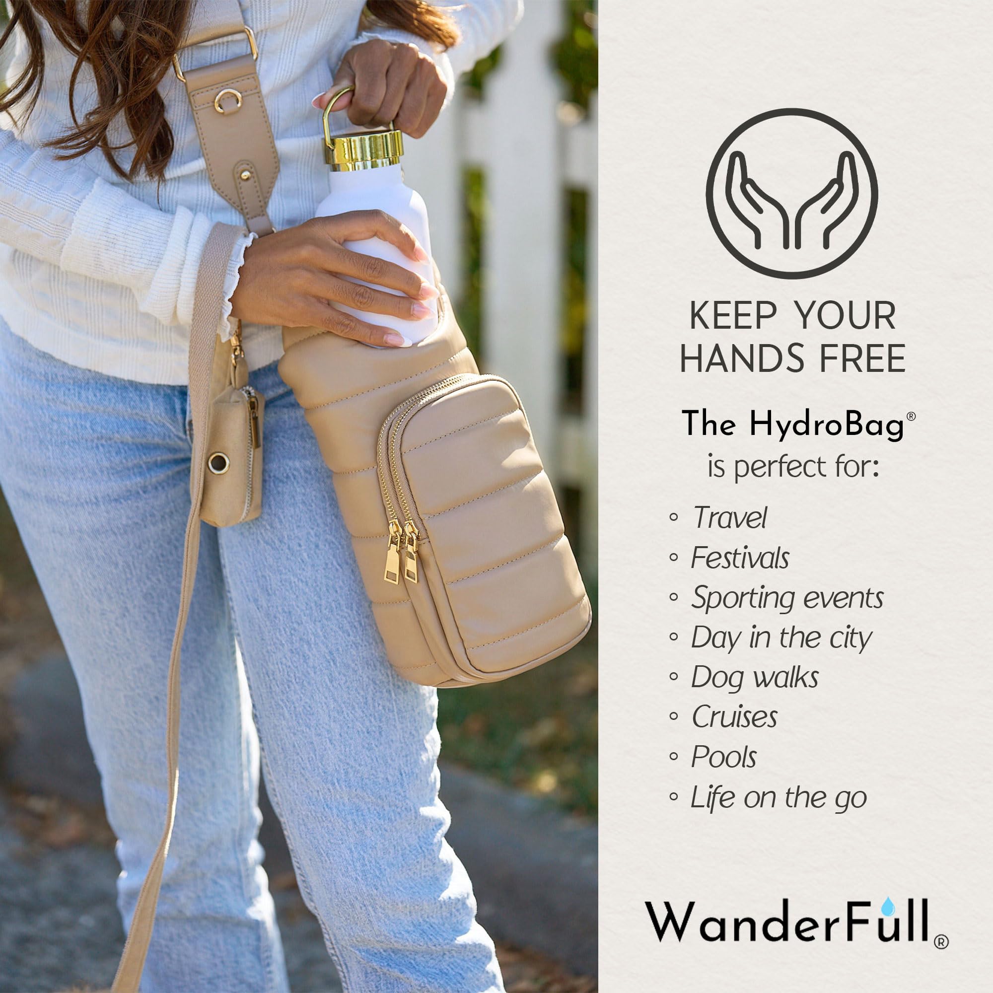 KEEP YOUR HANDS-FREE: Stay hydrated on the go with the patented WanderFull HydroBag; ideal for sightseeing, festivals, sports events, travel, or dog walks. Enjoy convenience, without compromising on style. Water bottle not included.