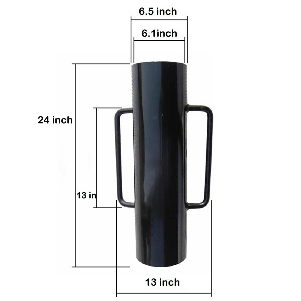 Product Size: 600mm (23.6 inches) overall length. 156mm (6.14 inches) inside diameter. Heavy steel construction: 34 pound drive weight. Heavy-wall pipe and sturdy thick rod handles. Weighted and reinforced steel head. Loop handles for comfortable gripping.