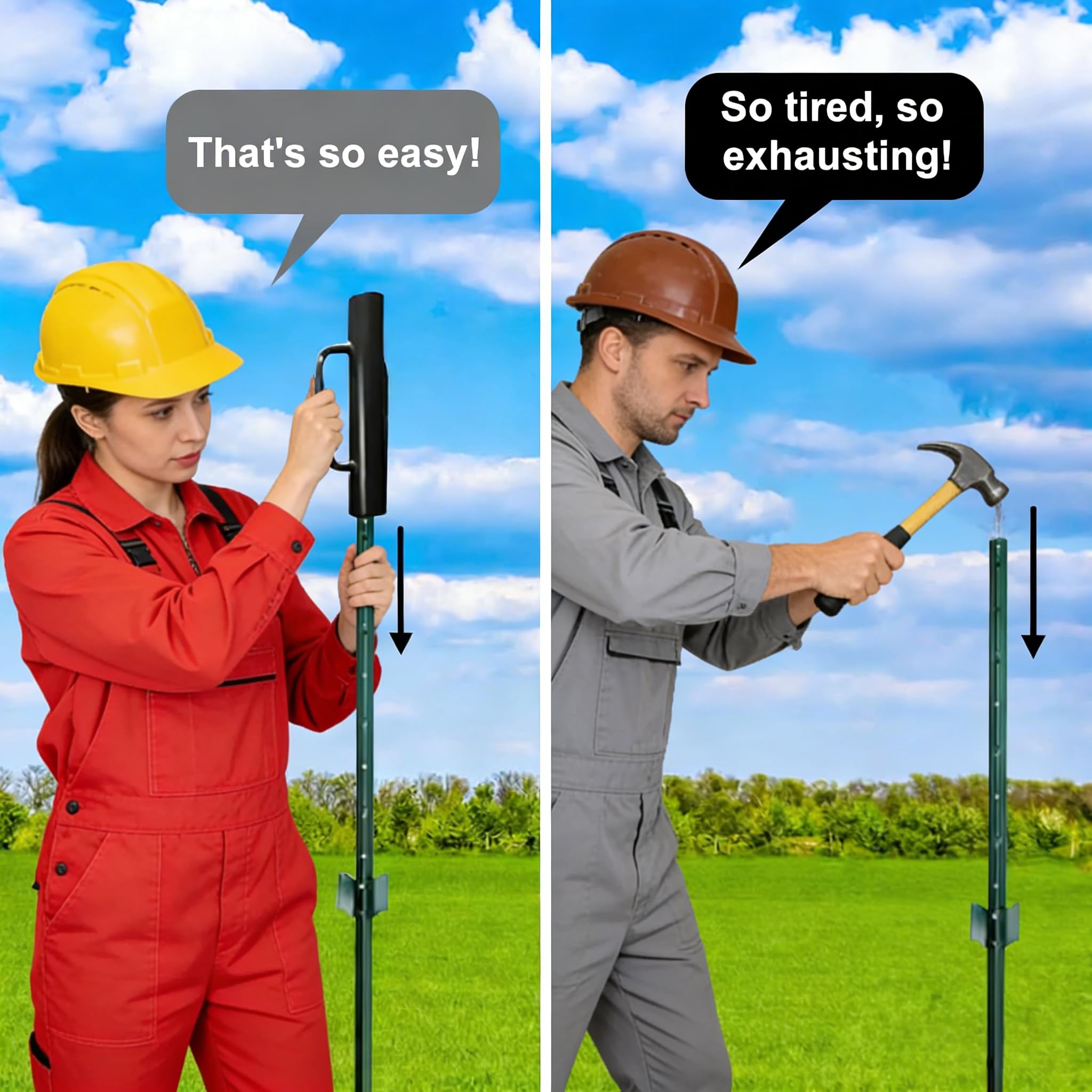 Multi-purpose: Reduce work injury with this post driver that easily driver steel posts into solid ground.Used to install the fence post, fix the garden mesh, protect garden fence using well.