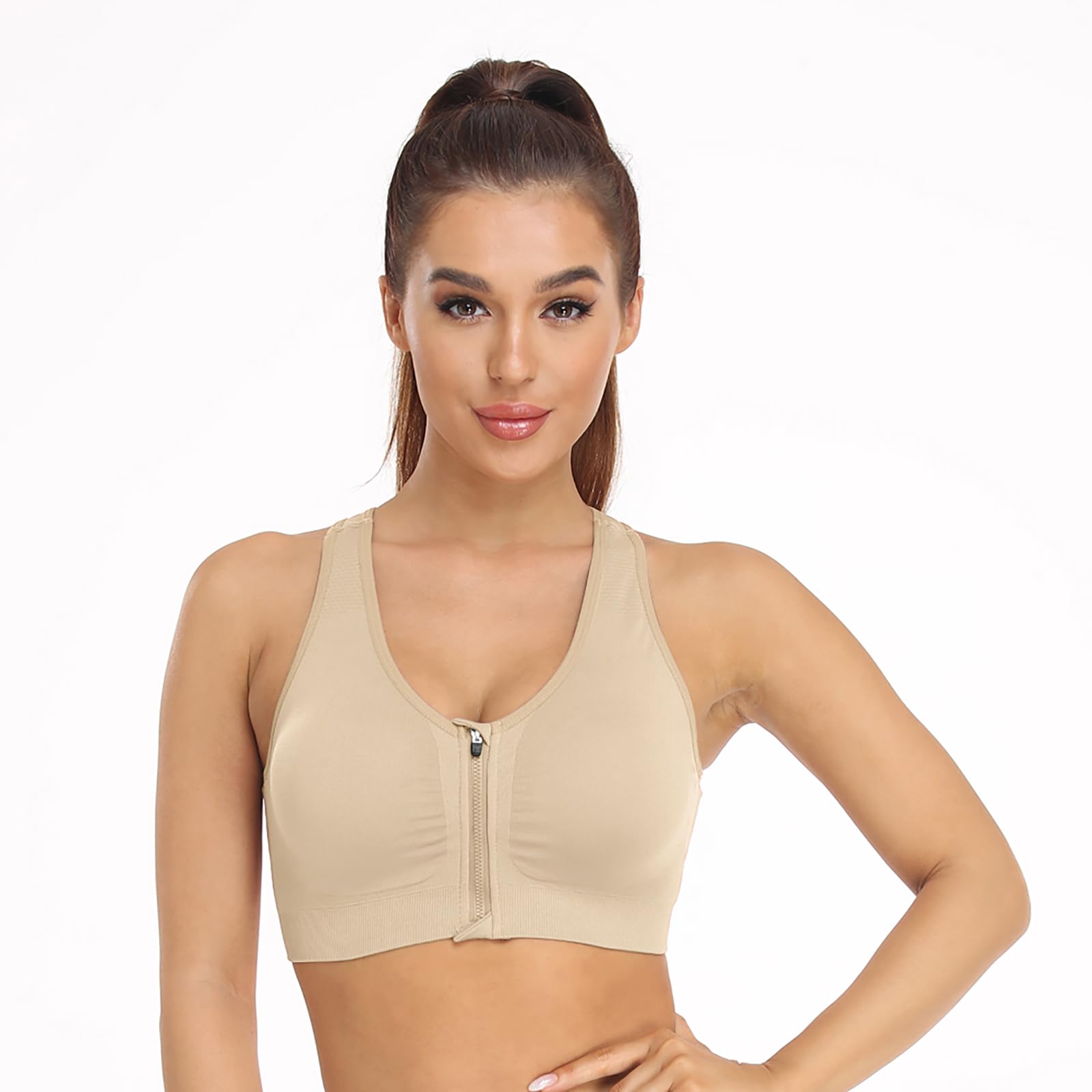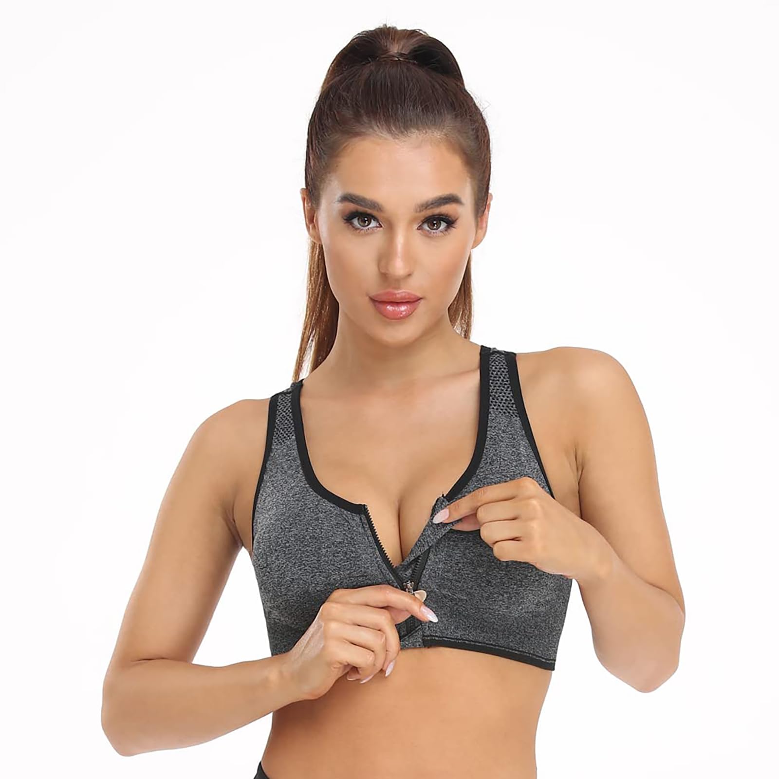 Front zipper closure-Easy to put on and take off with zipper front closure. Anti slide Zipper protect from sliding down when doing exercise. Protective layer of clothe covers the zipper on the inside to prevent scratching your skin