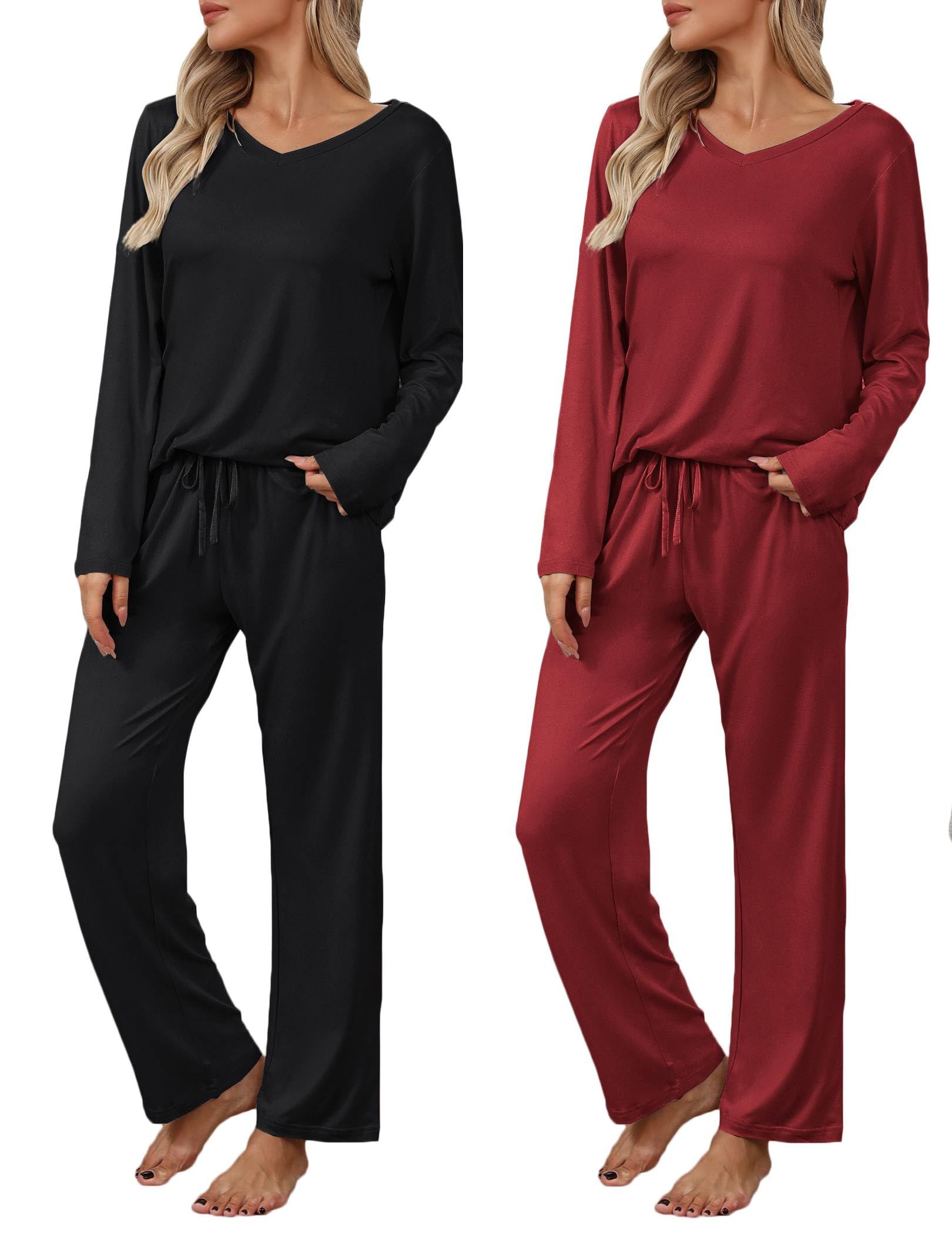 SHORT OR LONG SLEEVE OPTIONS: Choose from short-sleeve or long-sleeve tops with matching bottoms for the perfect set in any season. Lightweight, cozy, and ideal for year-round wear.