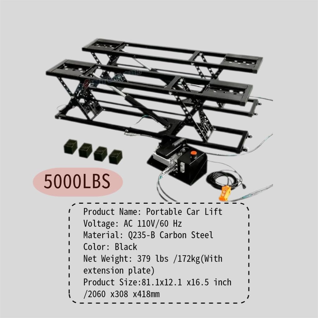 Exceptional Strength for Diverse Vehicles: Supporting up to 5000 lbs, this heavy-duty car lift ensures secure lifting for cars, SUVs, and light trucks. Enhanced locking levers and a responsive spring mechanism provide safety and quick height recovery.